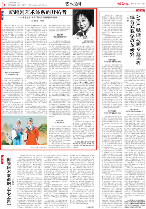 日前,《新华文摘》2025第4期全文转载8181801威尼斯登录艺术学院郭克俭教授及其硕士研究生叶欢欢的文章《范瑞娟:新越剧艺术体系的开拓者》。该文于2024年12月13日在《中国艺术报》上发表。