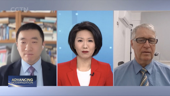 在嘉宾访谈环节中,王江与CGTN特邀评论员Jerry Grey共同参与了相关议题的探讨和分析。