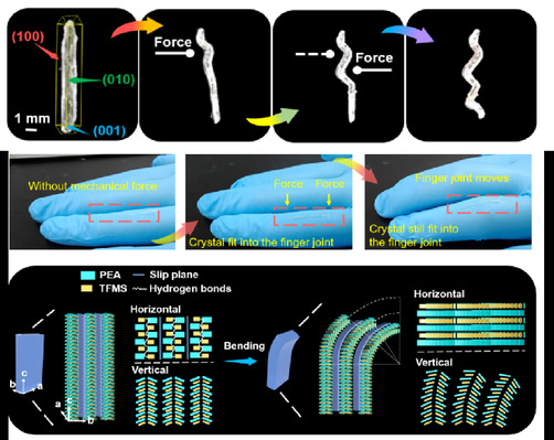 铁电材料在信息处理、能量转换和医疗监测等领域具有重要的应用价值。目前已知的铁电体受限于块材机械刚性而制约了其柔性器件发展。伴随着对柔性和可穿戴设备日益增长的需求,研究人员着手设计柔性可形变的分子铁电体,以解决上述的机械刚度问题。但是,由于晶体结构中分子堆积紧密,大多数分子基铁电晶体表现出固有脆性。