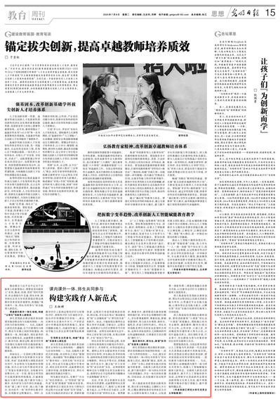7月8日,马克思主义学院王淑娉教授在《光明日报》发表题为《课内课外一体、师生共同参与构建实践育人新范式》的文章。