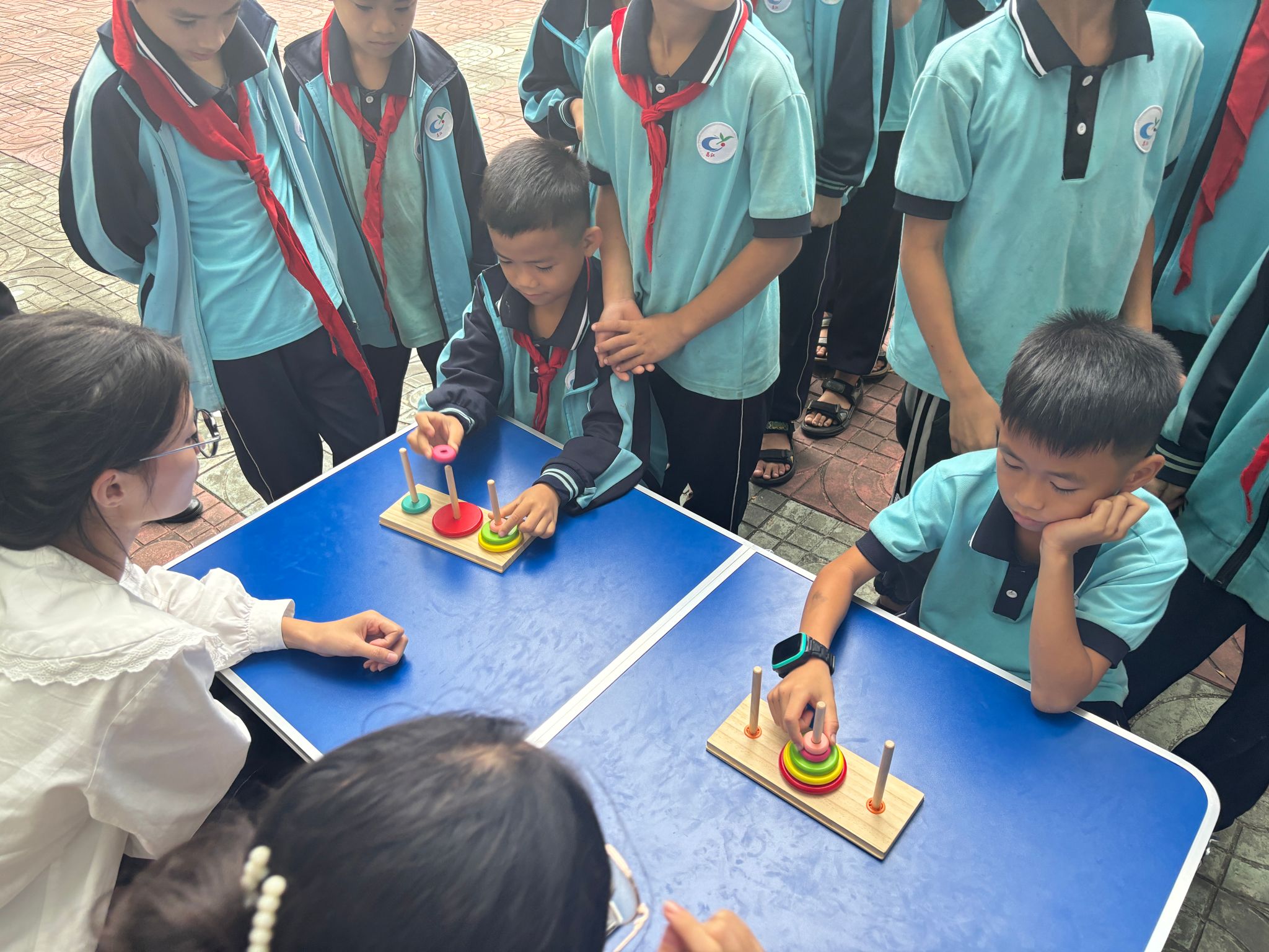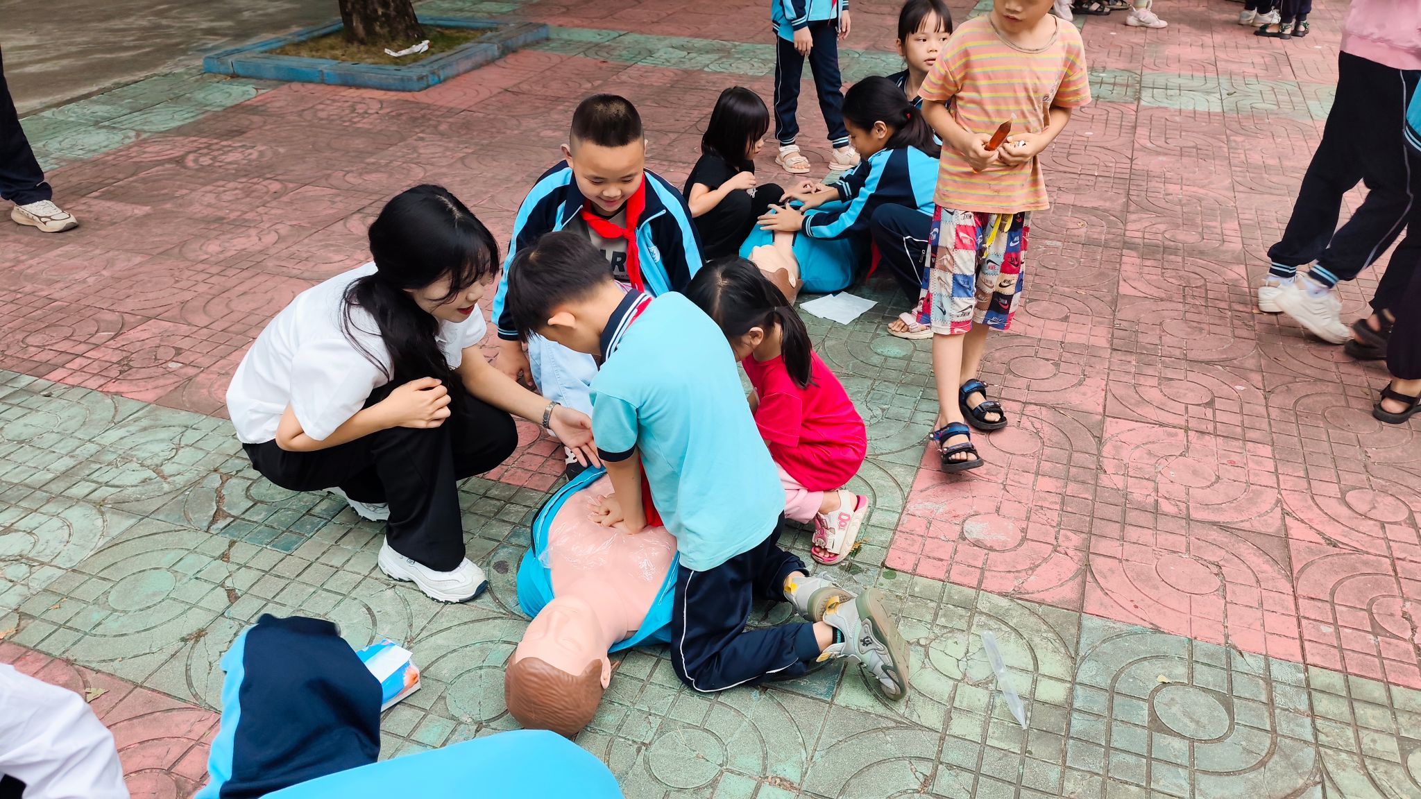 活动中,党支部师生党员和入党积极分子通过图文讲解、视频播放、现场演示相结合的方式,用通俗易懂的语言,向水头小学五、六年级的学生讲解溺水案例、预防措施和溺水后的心肺复苏等紧急救护知识,引导同学们增强安全意识,构建平安和谐校园。大家还与小学生们共同进行了“乒乓传递”“思维益智”“手脚并用”“合力搭建”等游戏,培养学生健康心态和合作精神,提高心理适应能力。