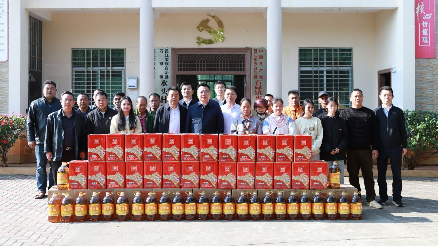 王华感谢昌江县委县政府的大力支持,感谢学校驻村第一书记和乡村振兴工作队队员的无私奉献。他深情地说,学校与水头村的村民们携手并肩,在脱贫攻坚和乡村振兴的征程中奋勇前行,希望大家继续努力,在党和政府的惠民政策指引下,将村庄打造得更加美丽宜居,让生活越过越红火。校领导将精心准备的慰问品递到水头村村民手中,并送上诚挚的祝福:“春节将至,祝大家春节快乐,阖家幸福!”