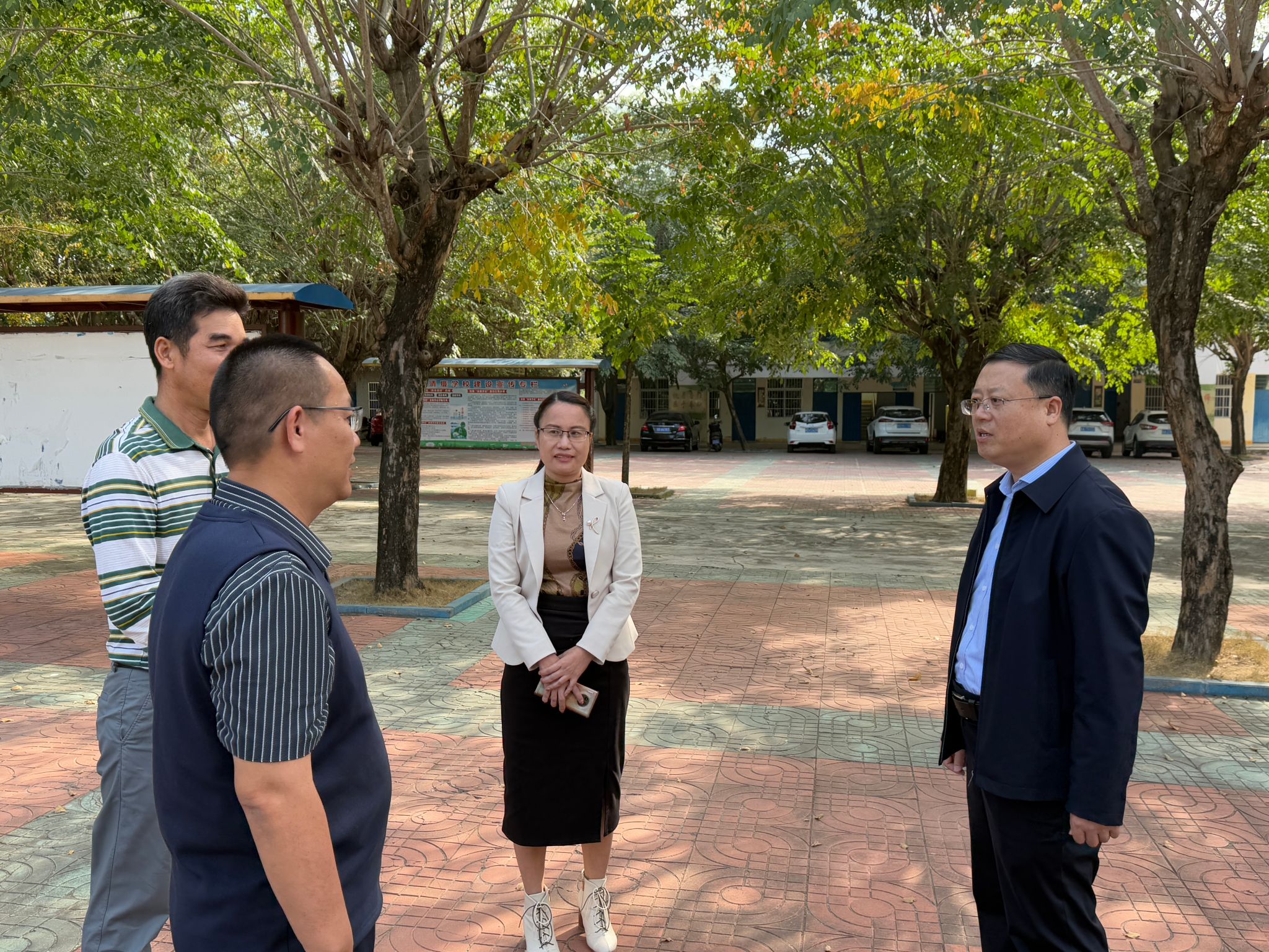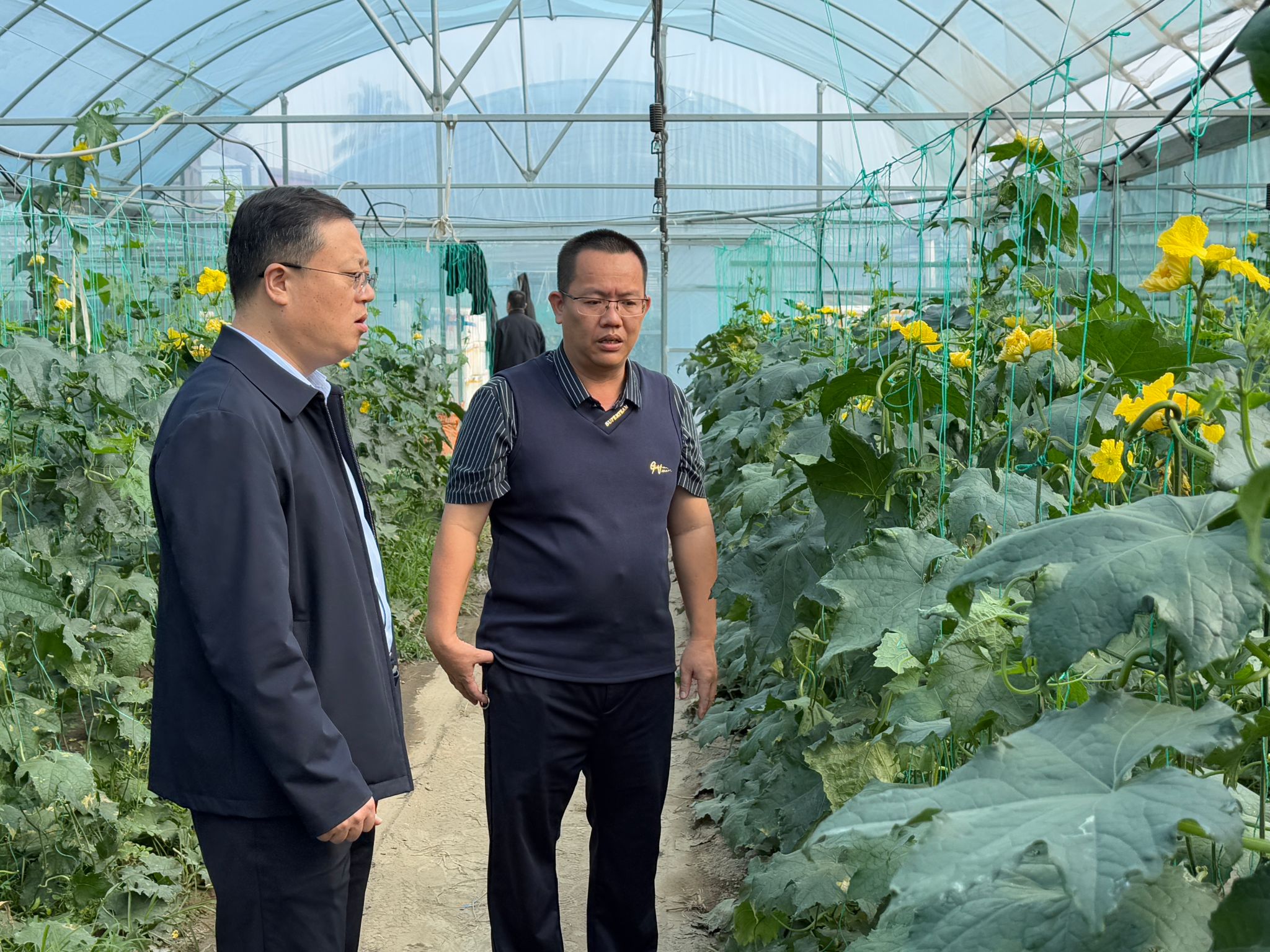 李厚永副校长在水头村蛋鸡养殖基地、大棚冬瓜种植基地和水头小学调研