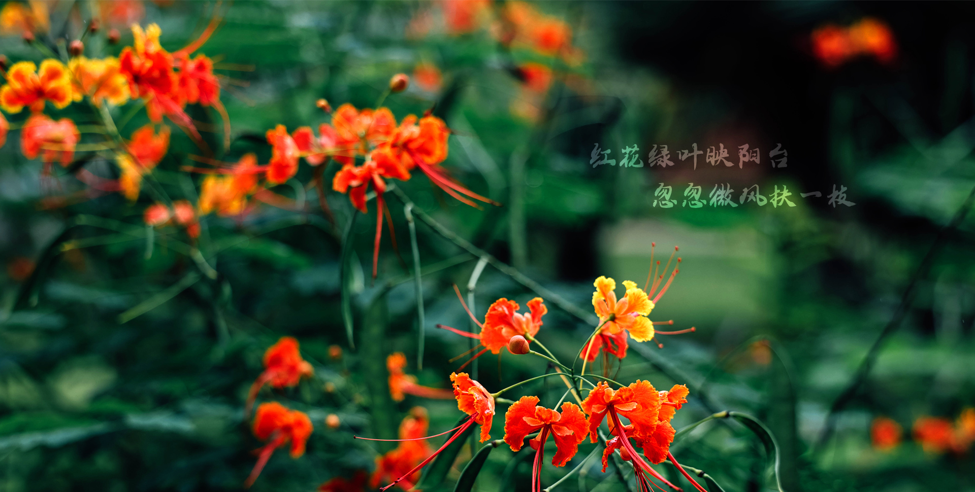 红花绿叶映阳台 忽忽微风扶一枝