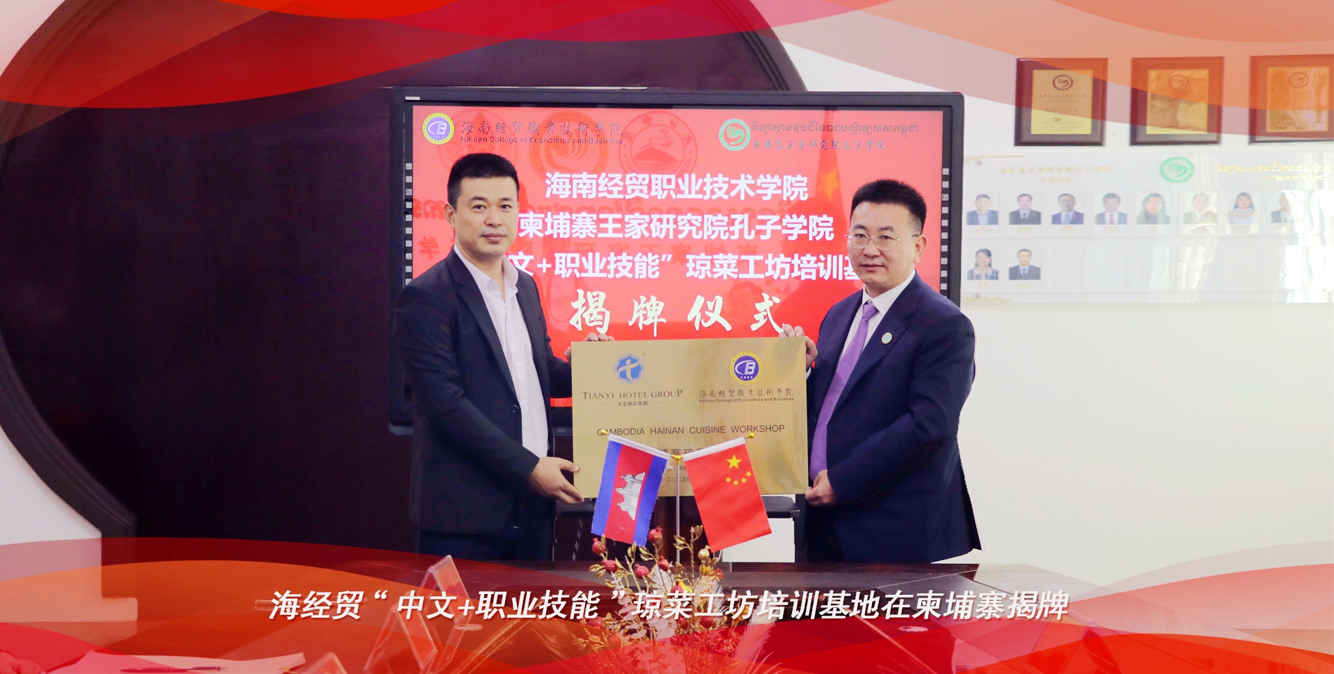 海经贸与柬埔寨王家研究院孔子学院共建“中文+职业技能”琼菜工坊培训基地