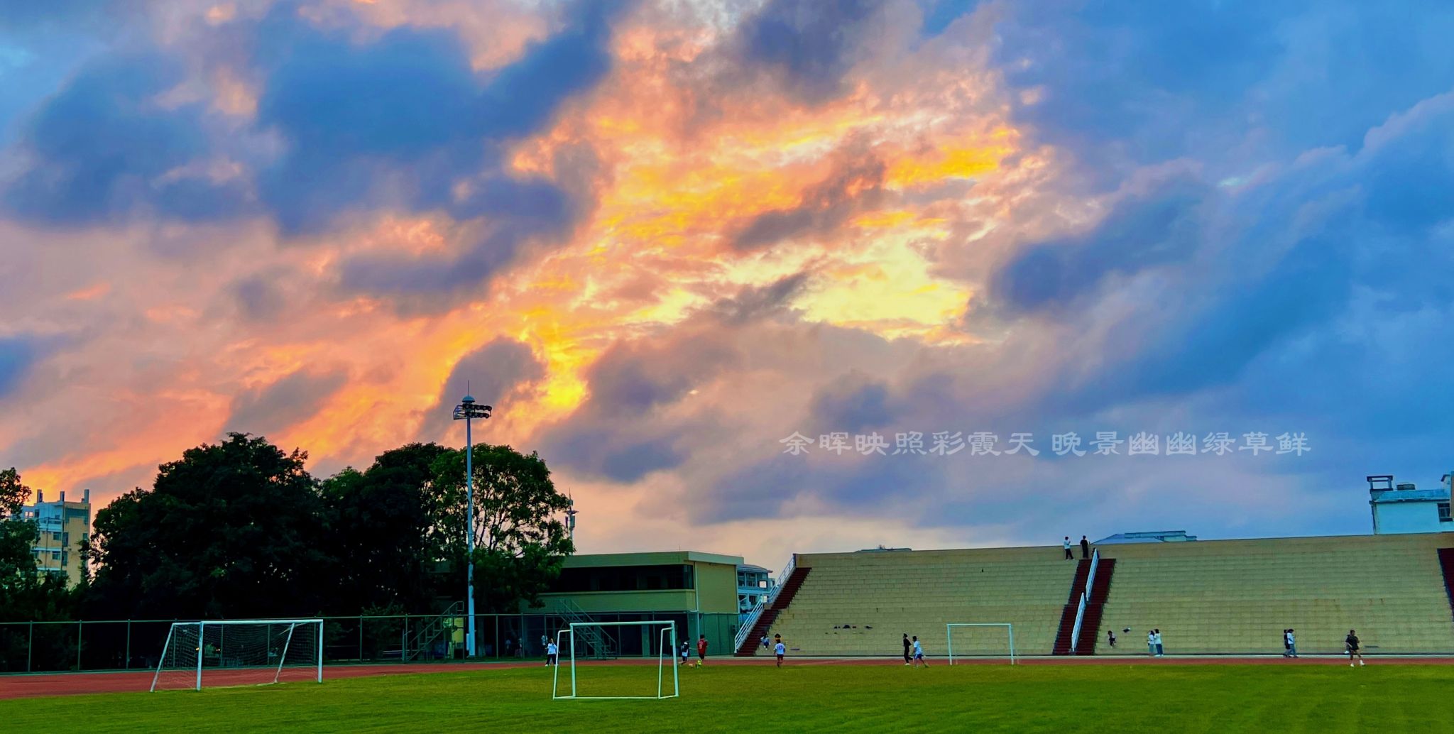 余晖映照彩霞天 晚景幽幽绿草鲜