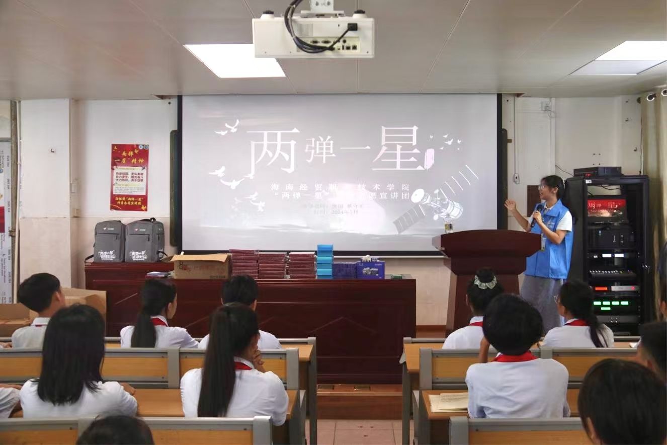 海经贸“两弹一星”精神科普志愿宣讲团由信息技术学院10名志愿者组成。在校团委和指导教师的支持带领下,宣讲团成员先后来到海南多个市县,深入学校、社区、乡村,通过暑期“三下乡”社会实践、主题团日活动、红色爱国主义题材影片观影活动等方式,以青年视野、青年思维和青年话语,向群众普及核科学知识,展示核工业在国家发展中的重要地位和作用,传递“两弹一星”精神的核心价值和时代意义,累计开展宣讲28场,覆盖2100余人次,志愿服务累计时长超过1000小时,形成报告、视频、宣传册、图集等11份。宣讲活动得到学习强国、海南日报等媒体报道12次。