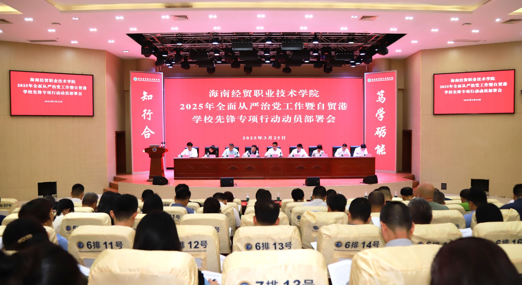 3月25日,beat365vip官网登录入口召开2025年全面从严治党工作暨自贸港学校先锋专项行动动员部署会,总结回顾了2024年学校全面从严治党工作,研究部署了学校2025年全面从严治党重点工作任务,部署落实自贸港学校先锋专项行动任务。学校党委书记王华出席会议并讲话,党委副书记、校长崔昌华主持会议,党委委员和校领导陈修焕、万力维、符史杭、李厚永、杨娜、田小林、方天海出席会议。