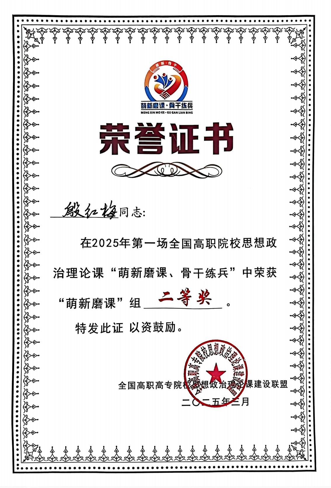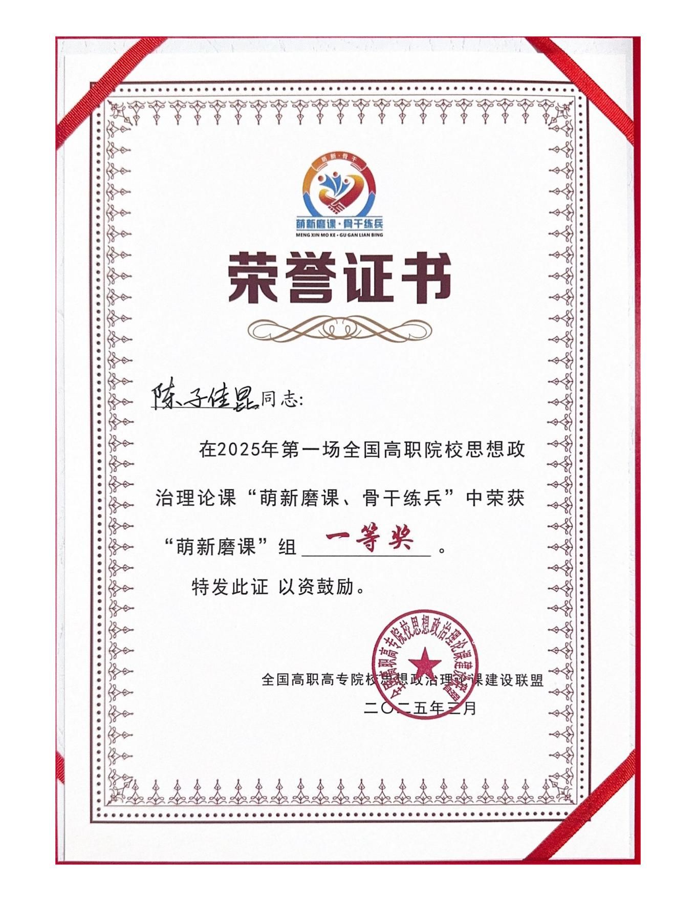 3月29日,2025年全国高职院校思想政治理论课第一场“萌新磨课、骨干练兵”教学展示活动在南宁圆满落幕。beat365vip官网登录入口陈子佳昆老师获得“萌新磨课”组一等奖,殷红梅老师获得二等奖。