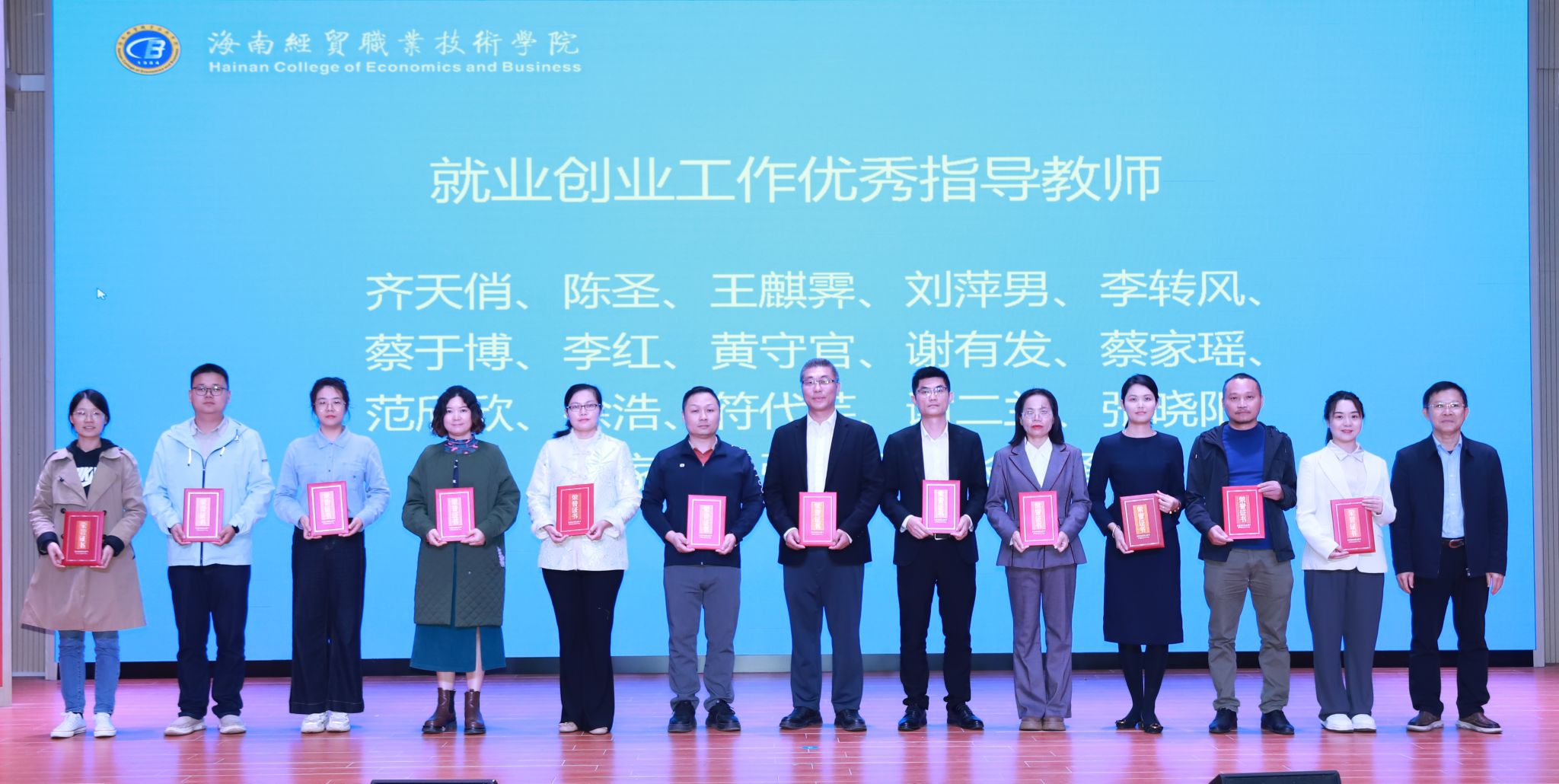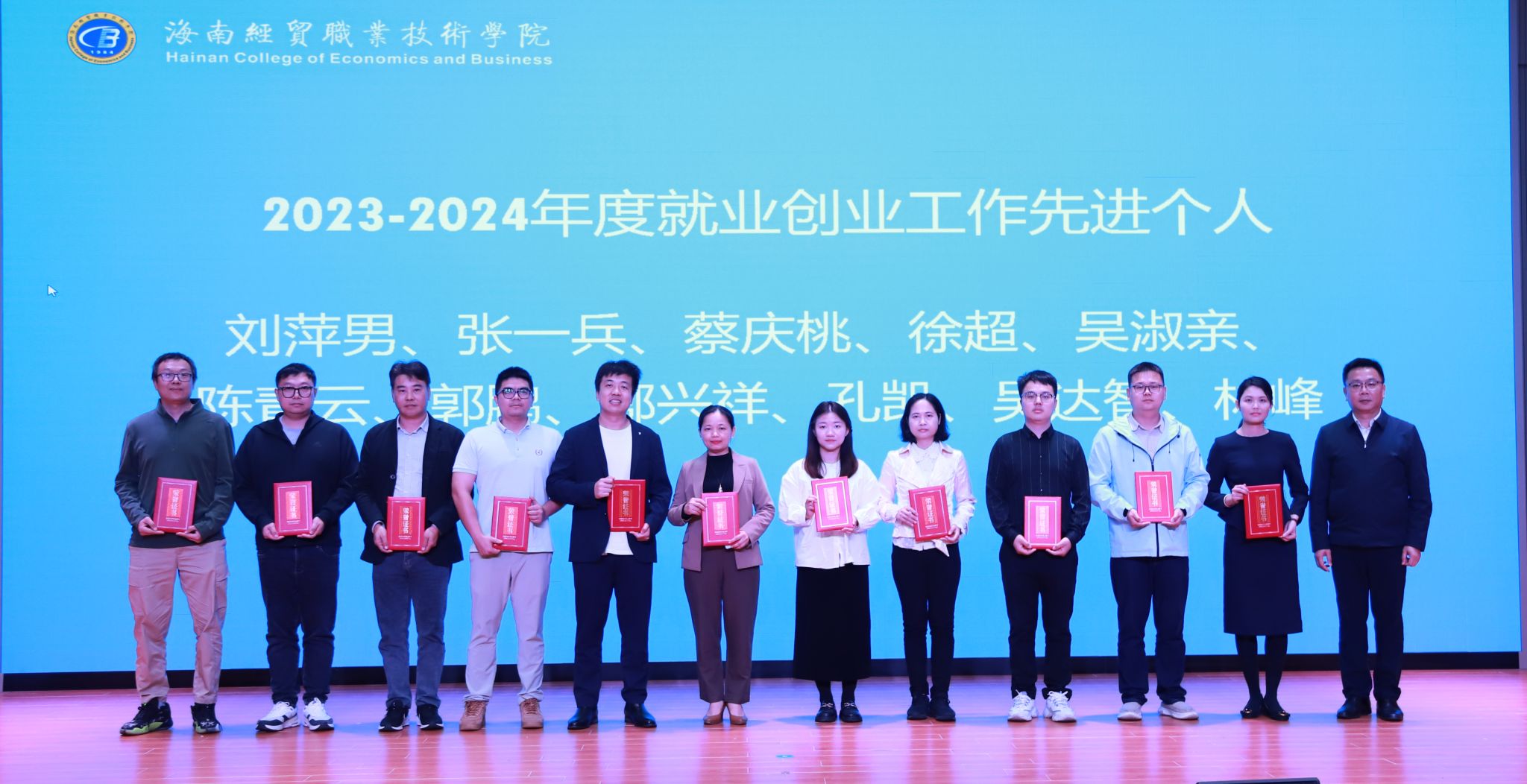 会议表彰了国际旅游学院等6个就业创业先进单位、刘萍男等11名就业创业工作先进个人、齐天俏等18名就业创业优秀指导教师和创新创业大赛类获奖团队和项目。