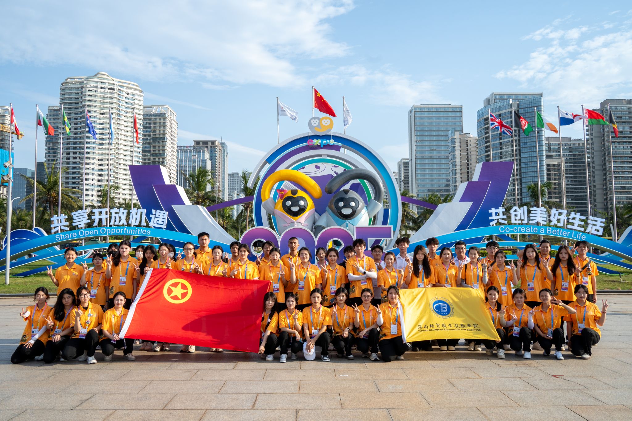 以青春热忱为底色,用专业素养铸就品质。热情洋溢的微笑、专业优质的服务、精益求精的态度、一丝不苟的精神,海经贸师生志愿者们认真负责并圆满完成各项工作,以高标准服务为消博会注入活力新风,向世界传递中国青年的温度与力量。