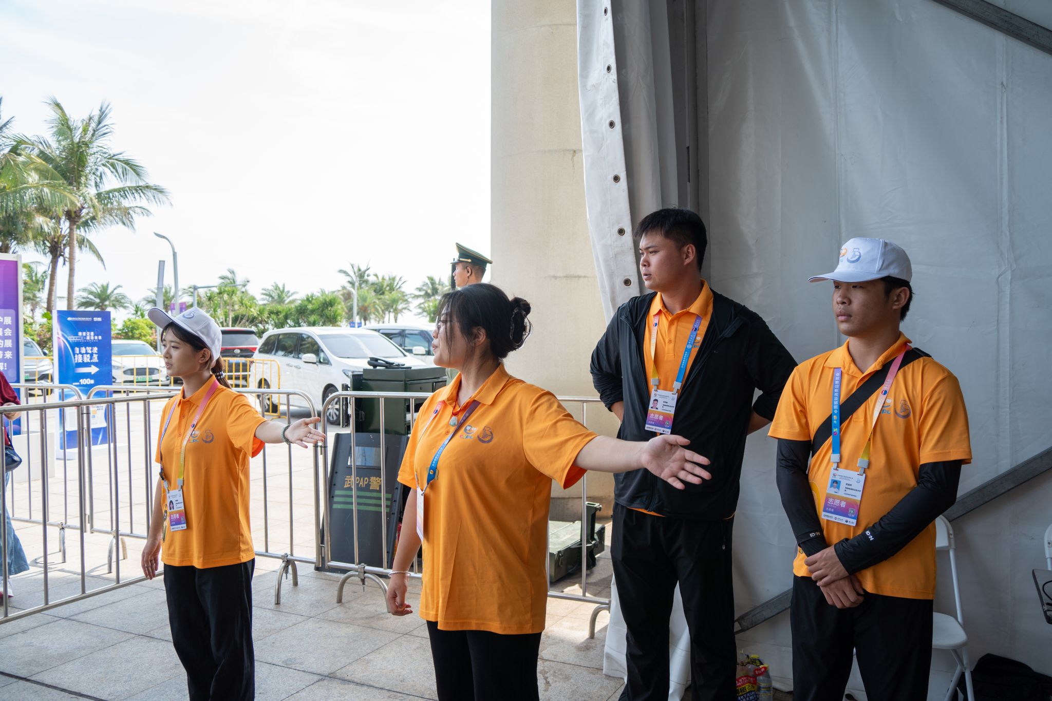 展务组志愿者在会场、后台和海边秀场作志愿服务