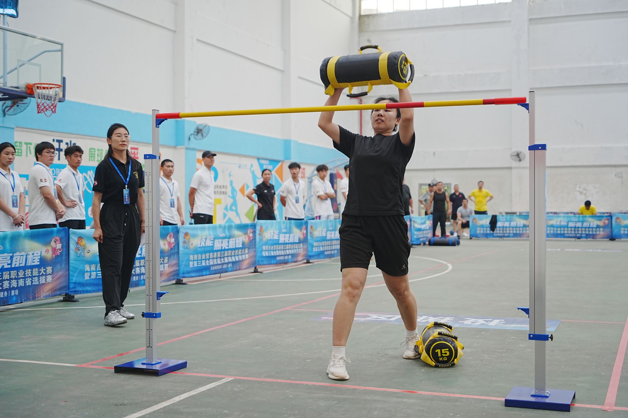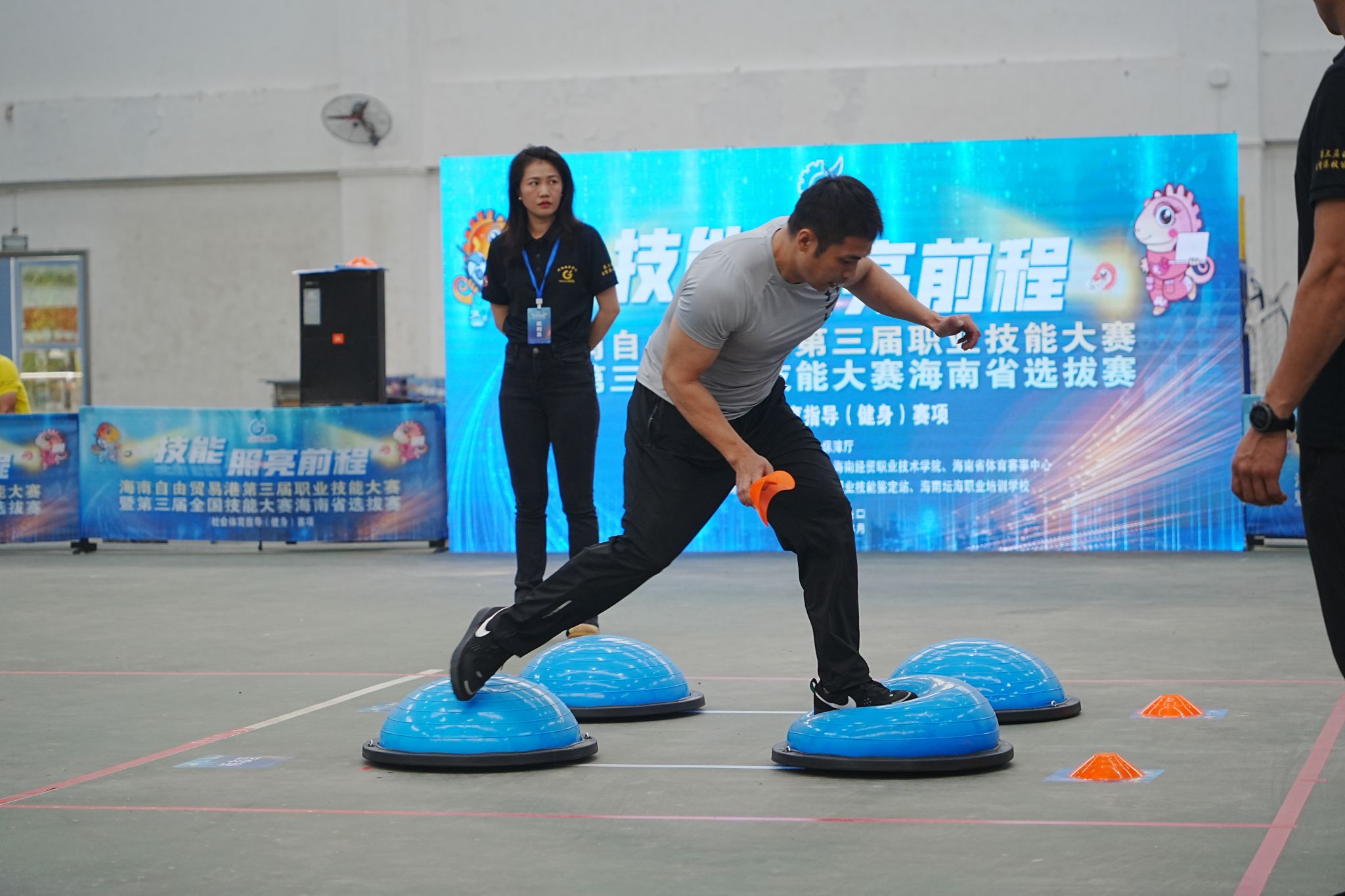在社会体育指导(健身)赛项中,选手们从运动技术设计、动作教学作答、体能比拼、姿态与动作评估和知识竞答等五个模块展开激烈比拼,充分展现对运动人体科学和健身运动知识的掌握情况。