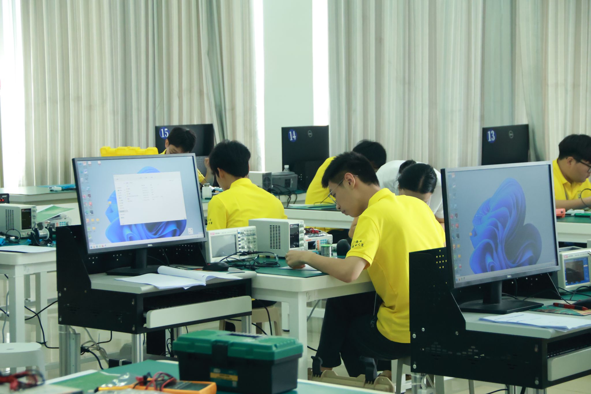 电子技术赛项以“产教融合、创新驱动”为导向,考察参赛选手在限定时间内完成涵盖电子电路原理图设计、嵌入式编程、PCB设计、设备调试等全链条技术要求。选手们在竞赛中运用专业软件完成电路原理图设计与仿真、系统测试与优化等任务。