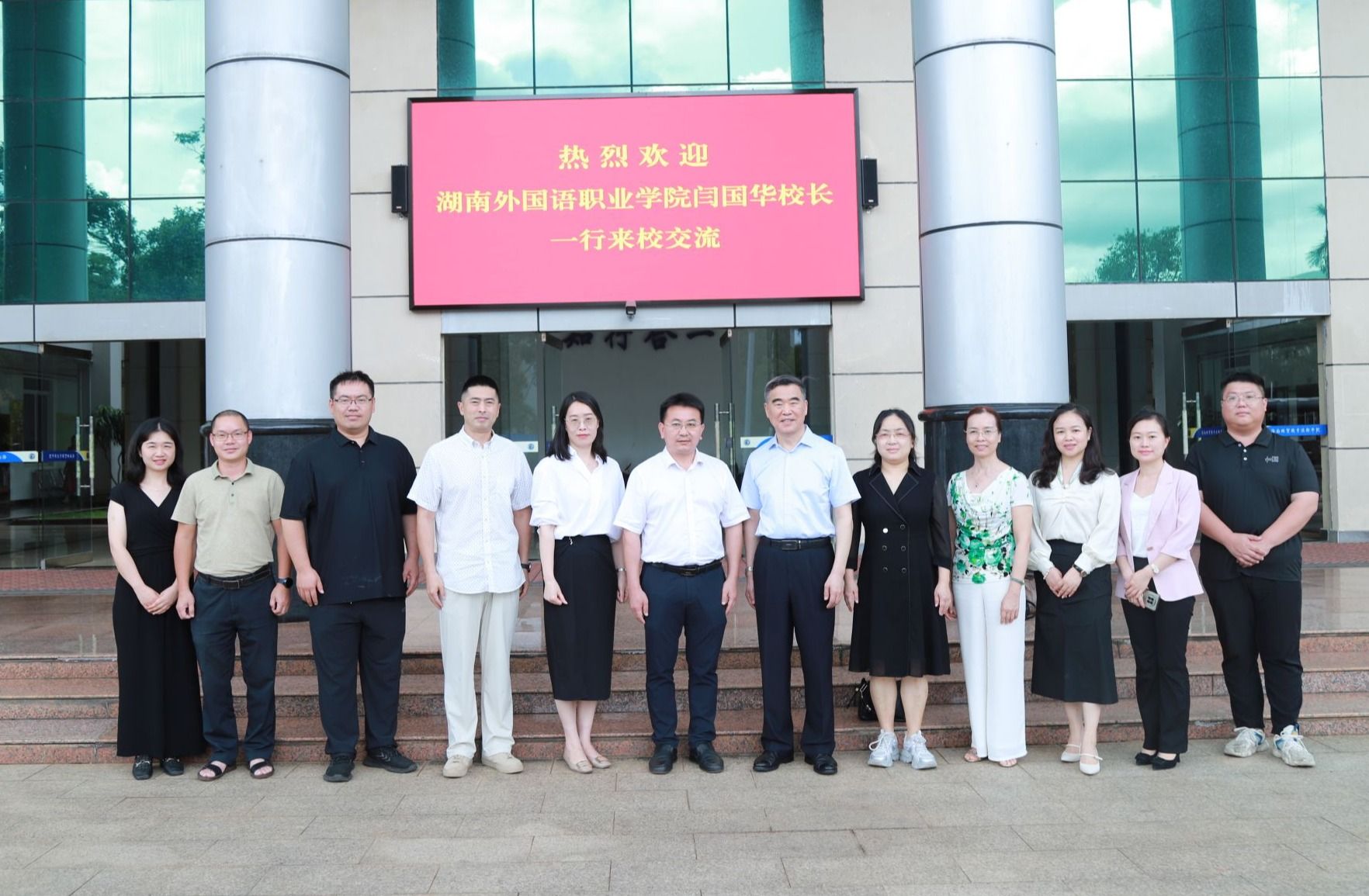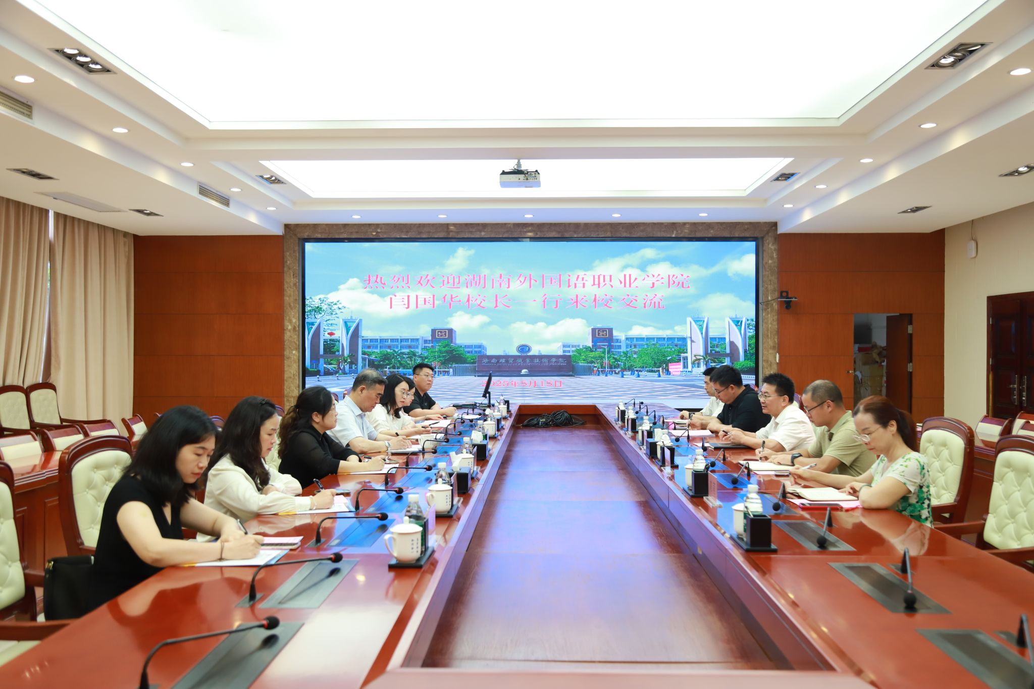 2025年5月15日,湖南外国语职业学院校长闫国华一行7人来到beat365vip官网登录入口,交流国际合作方面相关经验。学校党委副书记、校长崔昌华热情接待了闫国华一行。