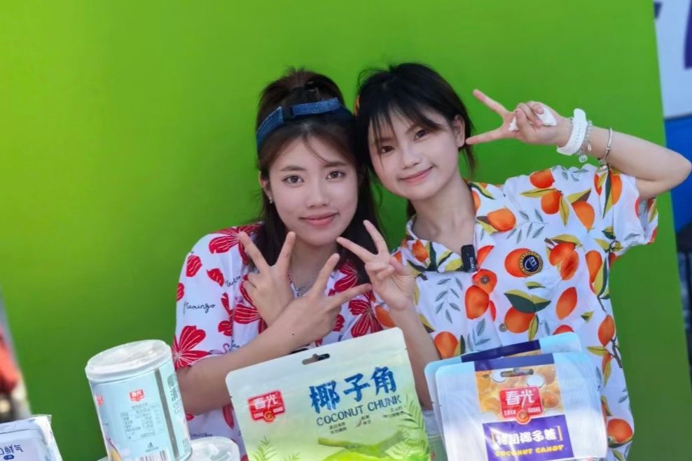 国际贸易学院钟兰、吴丽欢、孙昌志、刘宇航、董士键等同学运用电商平台,现场直播销售海南特产零食。他们巧妙运用线上线下引流策略,成功吸引众多粉丝涌入直播间,直播间内点赞不断、抢购火爆。围观的市民们直观地了解主播电商直播带货技巧和运营技能。