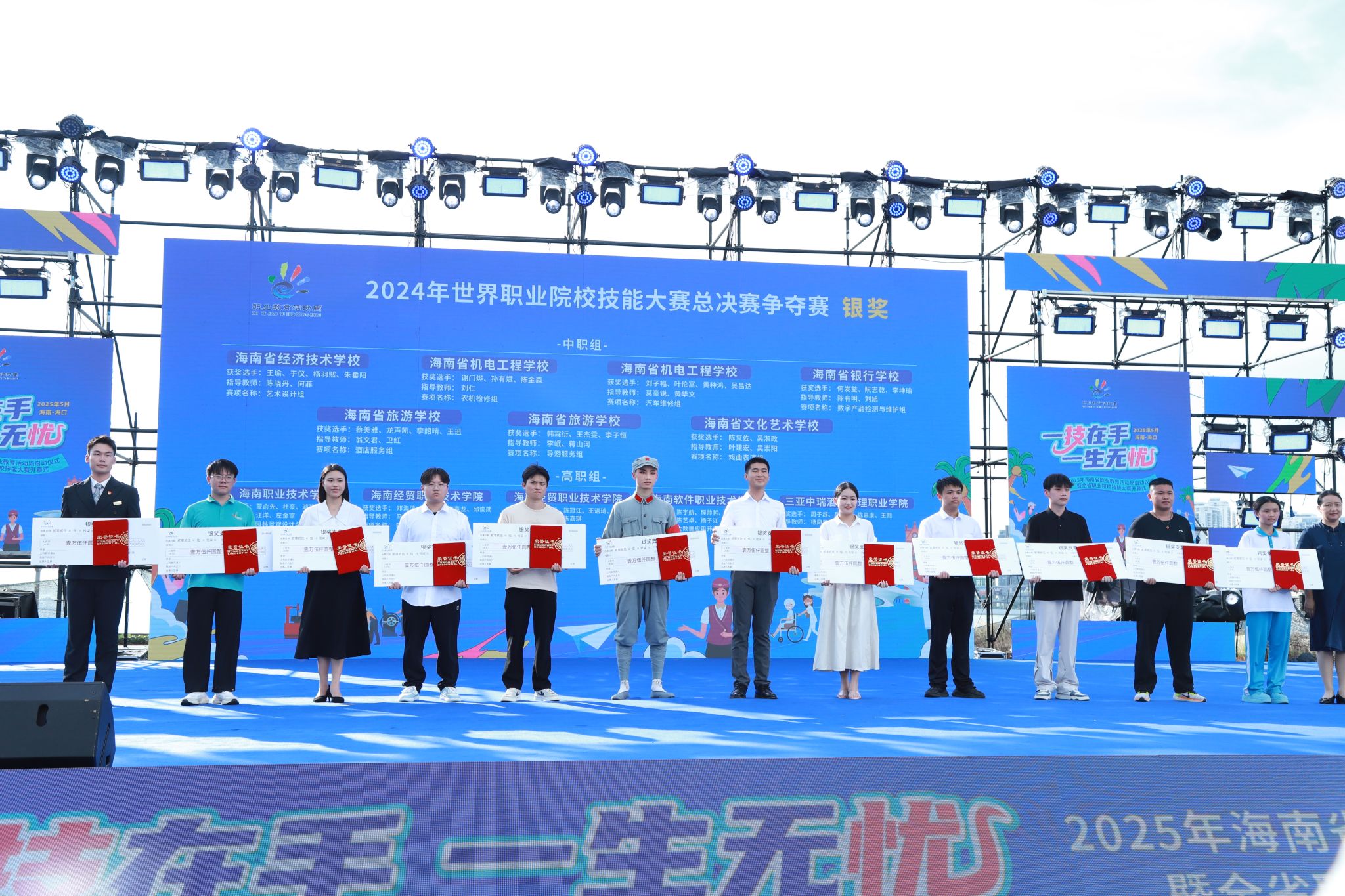 开幕式对2024年世界职业院校技能大赛总决赛争夺赛获奖团队进行了表彰。beat365vip官网登录入口荣获“导游服务”“数字化设计与制造”赛项银奖,陈柏瑾、邓海波同学作为参赛选手代表上台领奖。
