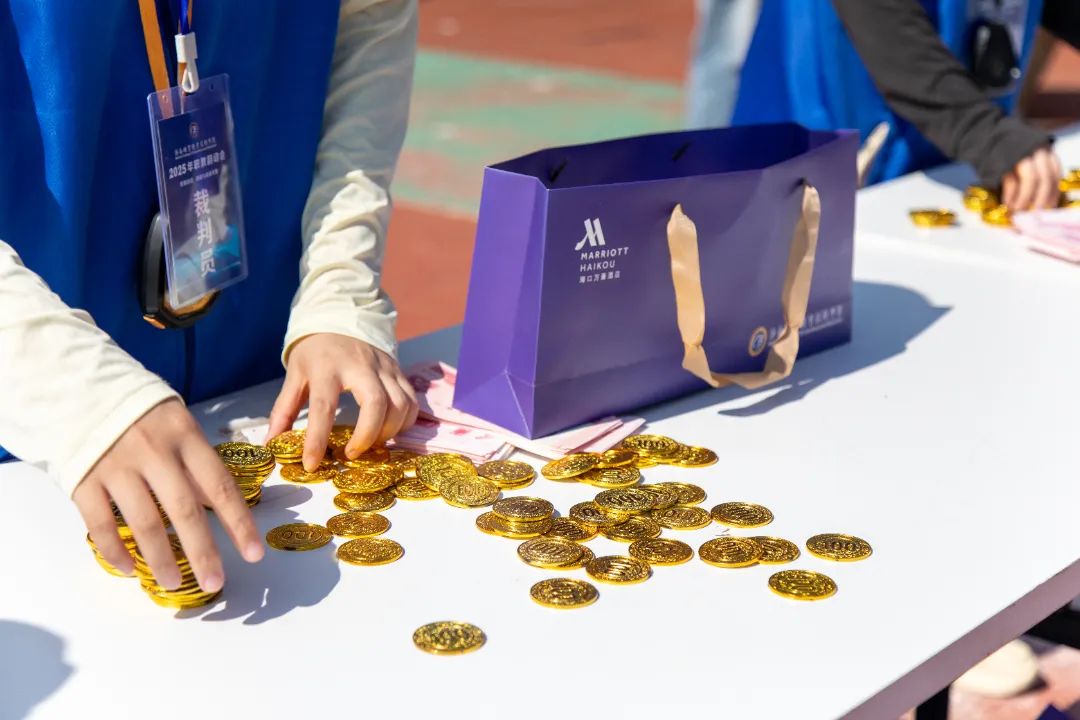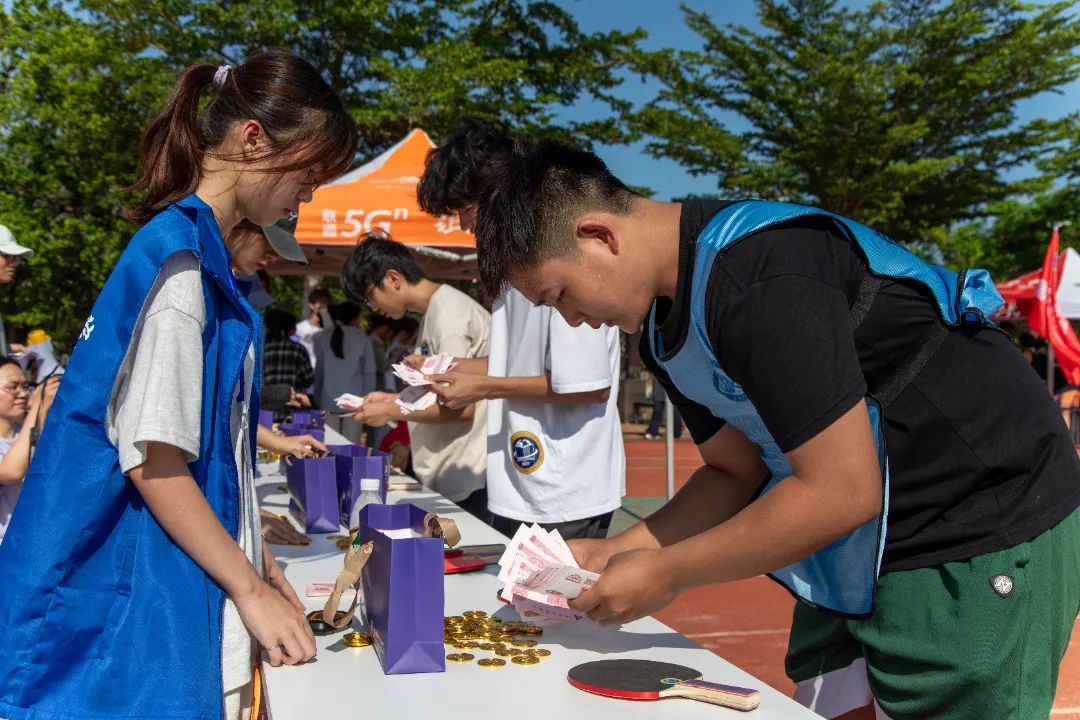 财务管理学院的“财源滚滚来”项目将财务管理专业知识与职业精神融入趣味挑战。乒乓球拍“叠取”金币,模拟财务工作中资金筹集的过程;高栏杆障碍模拟企业经营中面临的市场波动、政策变化等风险;精确统计金币数量,类比财务人员对资金的准确记录与分析。参赛队员们小心翼翼,平衡叠满金币的乒乓球拍,按要求越过障碍物。“加油!加油!胜利啦!”大家为获胜的队伍欢呼鼓掌。