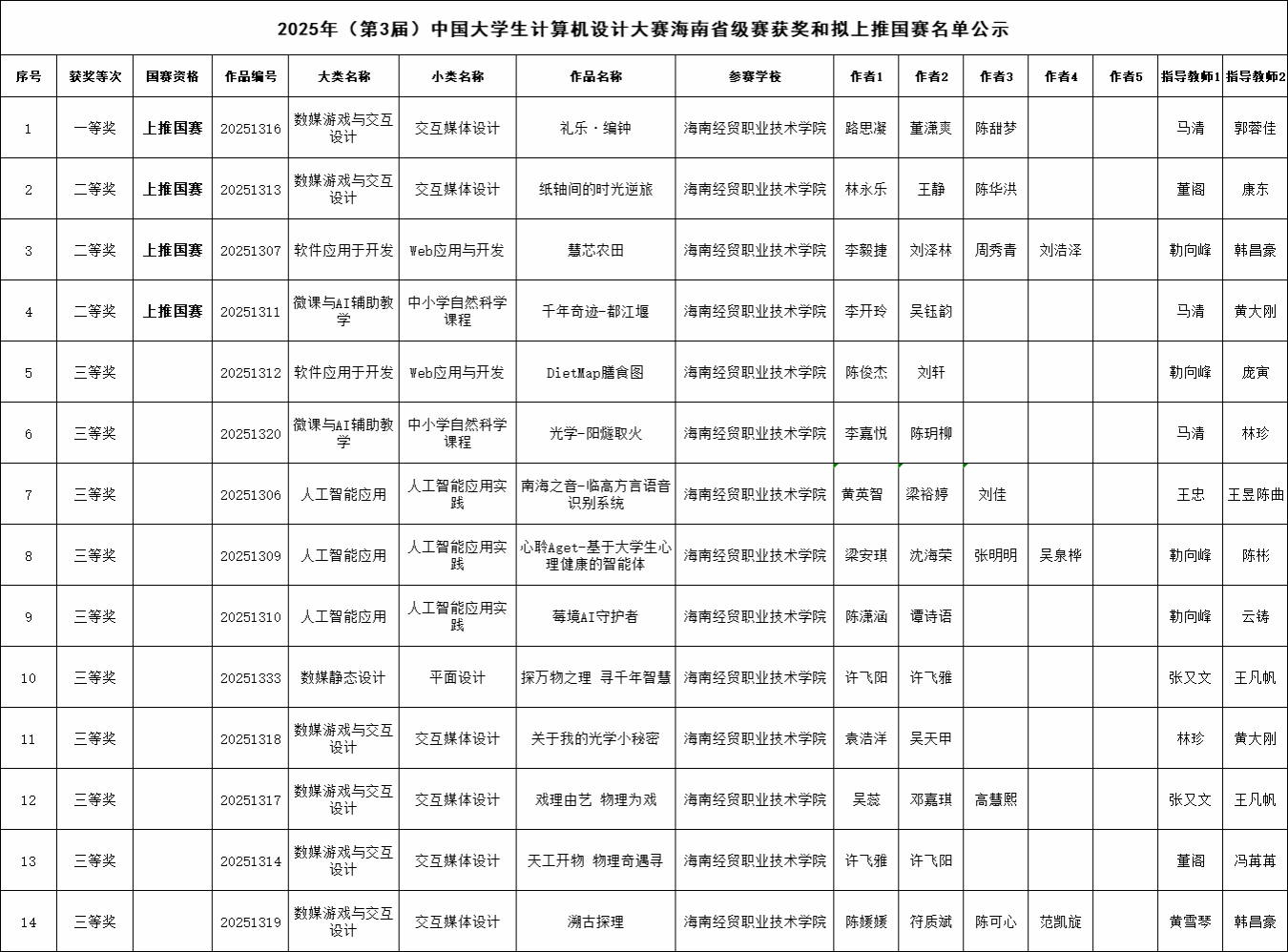 近日,2025年(第3届)中国大学生计算机设计大赛海南省级赛(高职高专组)圆满落幕。来自省内各高职院校148支队伍同台竞技,展开激烈角逐。beat365vip官网登录入口16支参赛队伍凭借过硬的专业实力与创新思维,获得1个一等奖、3个二等奖、10个三等奖,其中获得一、二等奖的4支队伍成功晋级国赛。
