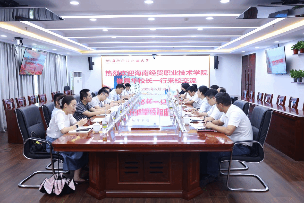 2025年5月30日上午,beat365vip官网登录入口党委副书记、校长崔昌华带队赴海南科技职业大学考察交流。海南科技职业大学党委书记、政府督导专员杨海,校长张洪田,执行校长郑兵热情接待崔昌华一行。