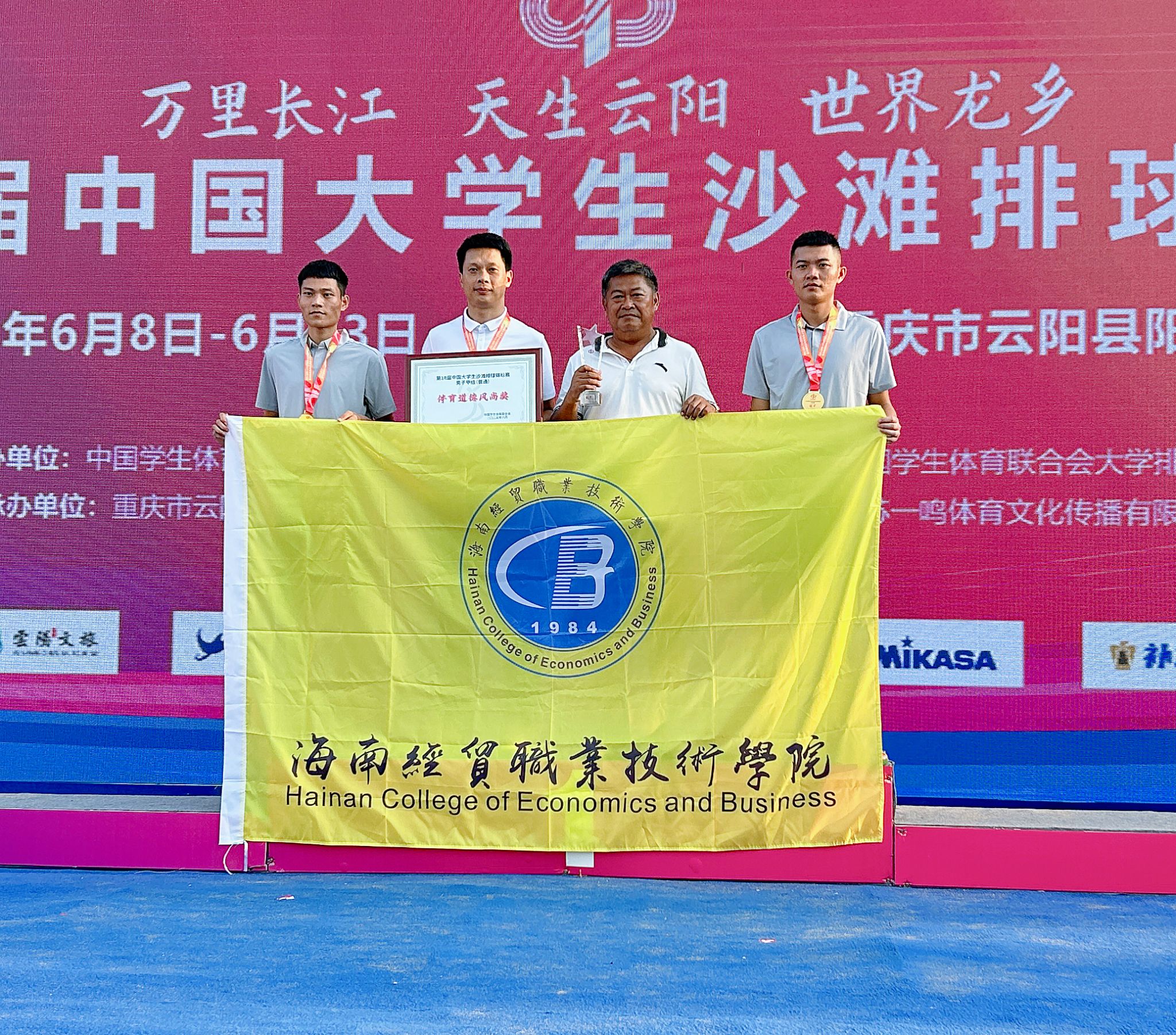 2025年6月8日-13日,第十八届中国大学生沙滩排球锦标赛在重庆市云阳县阳光沙滩展开激烈角逐。beat365vip官网登录入口队在决赛中以2:0战胜海口经济学院队,成功夺得全国冠军。这是继海经贸蝉联第十六届、十七届中国大学生沙滩排球锦标赛男子冠军后,再一次摘得比赛桂冠。在本次比赛中,学校荣获“体育道德风尚奖”。