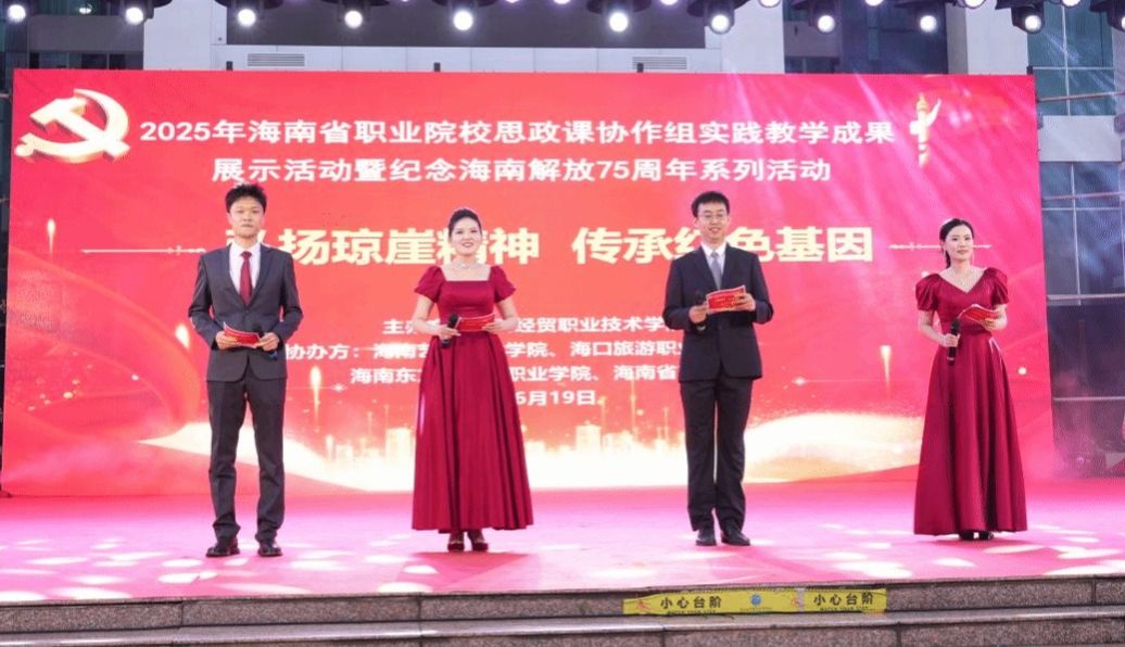 海经贸作为海南省职业院校思政课协作组牵头单位,积极组织开展中高职一体化实践教学展示活动。本次活动以纪念海南解放75周年为契机,以“弘扬琼崖精神、传承红色基因”为主题,采用“星火燎原”“孤岛奋战”“解放海南岛”“自贸新篇”四个篇章的沉浸式情景剧形式展开,结合“思想道德与法治”“习近平新时代中国特色社会主义思想概论”等课程,体现中高职一体化贯通的职业特色,积极探索“历史叙事+职业特色”的思政新模式。节目创编由各校马克思主义学院师生共同完成,主要演职人员为各校学生代表,为观众们生动演绎了一堂有思想、有情感、有深度、有温度的思政大课。