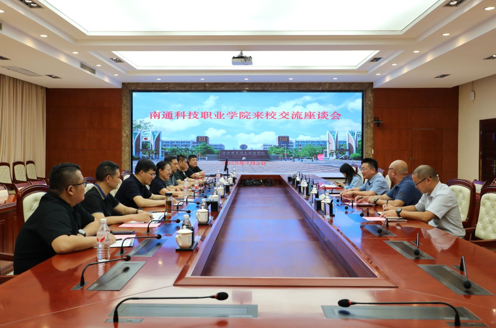 2025年7月2日,南通科技职业学院党委委员、副校长张跃群一行5人,阿里巴巴集团全球数字人才教育联盟项目运营专家张弛一行3人来到beat365vip官网登录入口,交流产教融合相关经验。学校党委副书记、校长崔昌华出席座谈会。