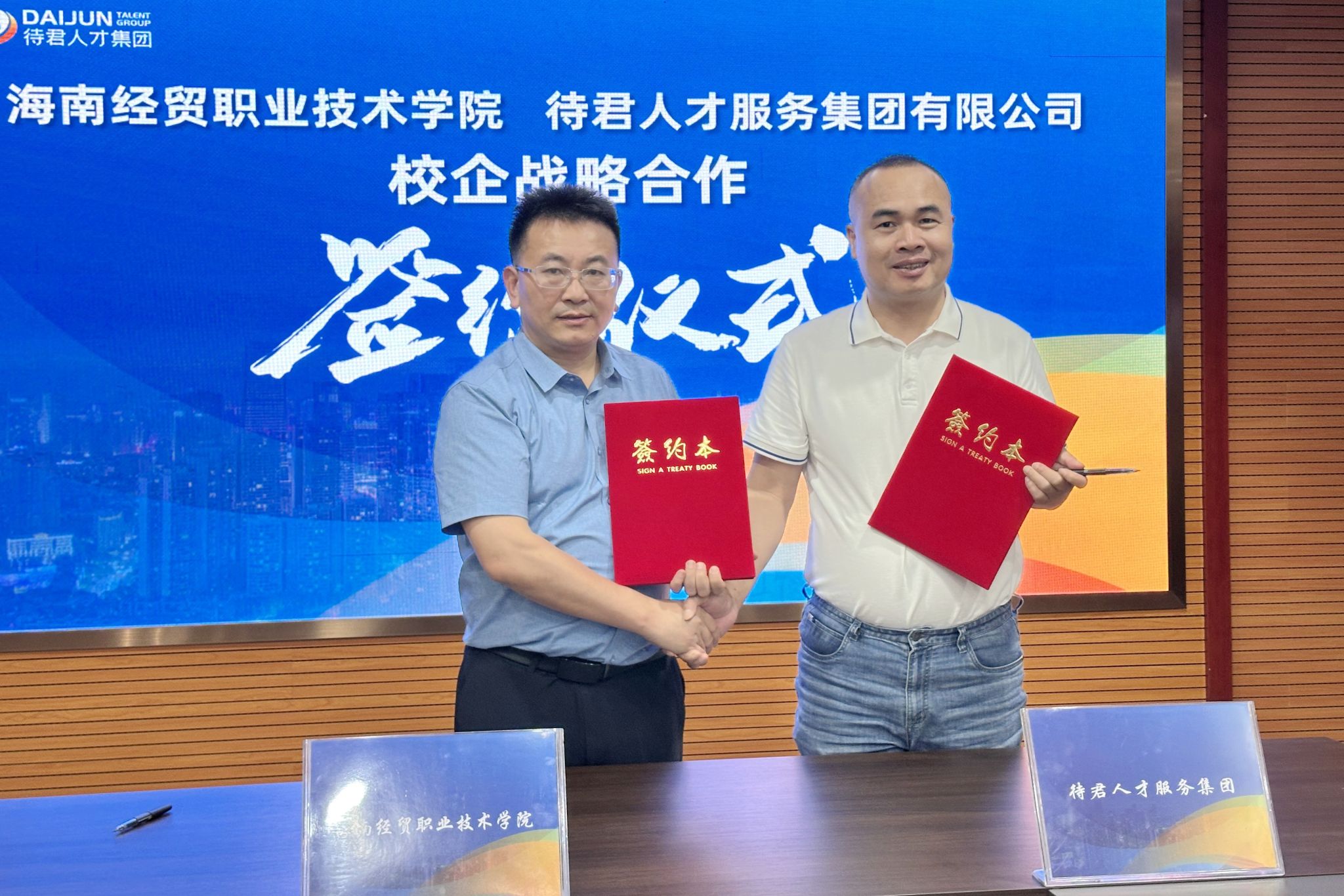 2025年7月2日,beat365vip官网登录入口与待君人才服务集团有限公司(以下简称“待君人才集团”)校企战略合作签约仪式在集团海口总部举行。校企双方将整合优势资源,在人才培养、实习就业、技能培训、平台共建等领域开展深度合作,共同助力海南自贸港人才高地建设。学校党委副书记、校长崔昌华,待君人才集团董事长羊学裘和集团核心管理层出席签约仪式。