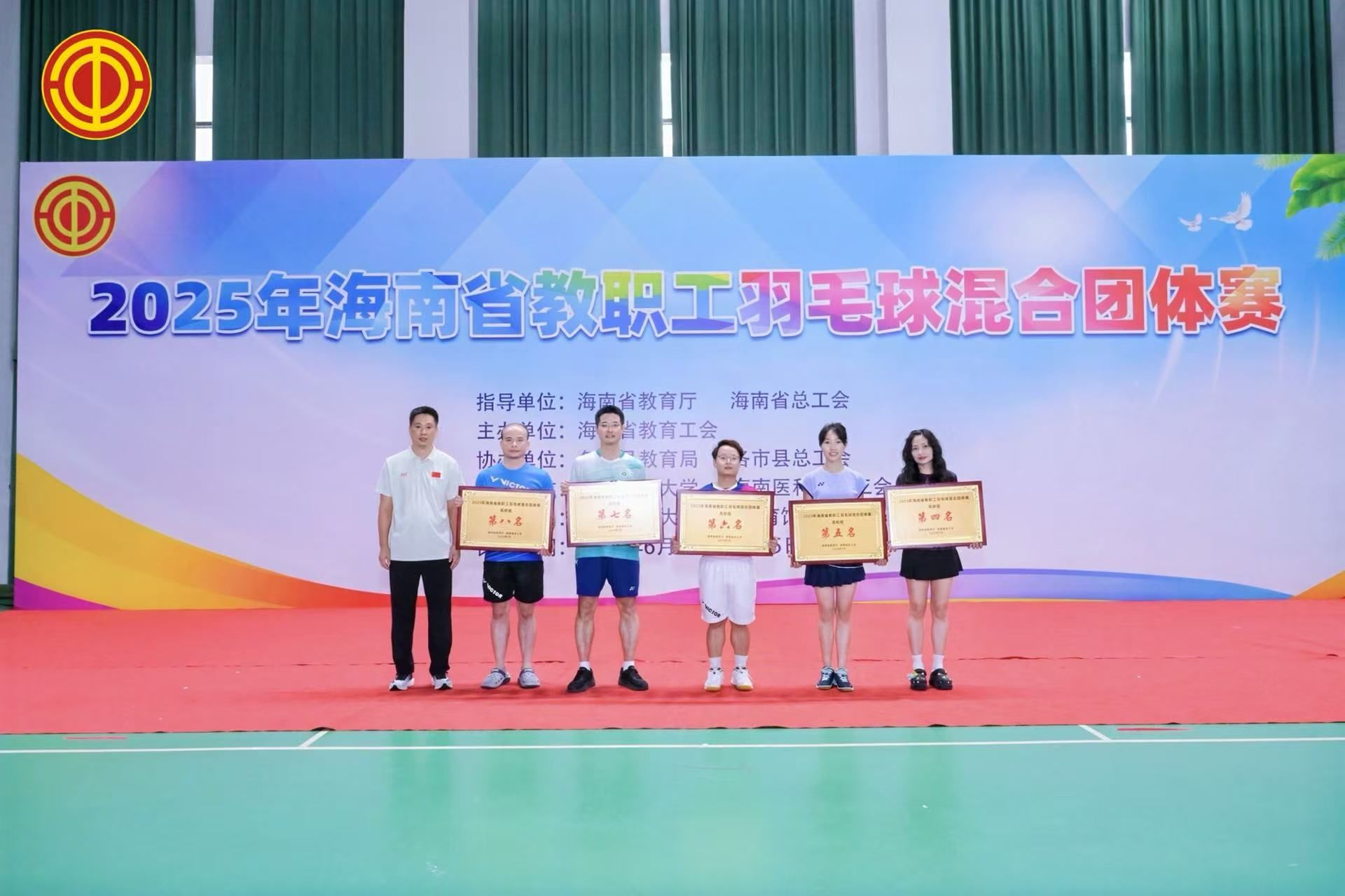 2025年海南省教职工羽毛球混合团体赛于6月30日至7月5日在海口举行。beat365vip官网登录入口教职工羽毛球队在赛场上奋勇拼搏,凭借出色发挥与良好赛风,荣获团体第六名,学校获得体育道德风尚奖。
