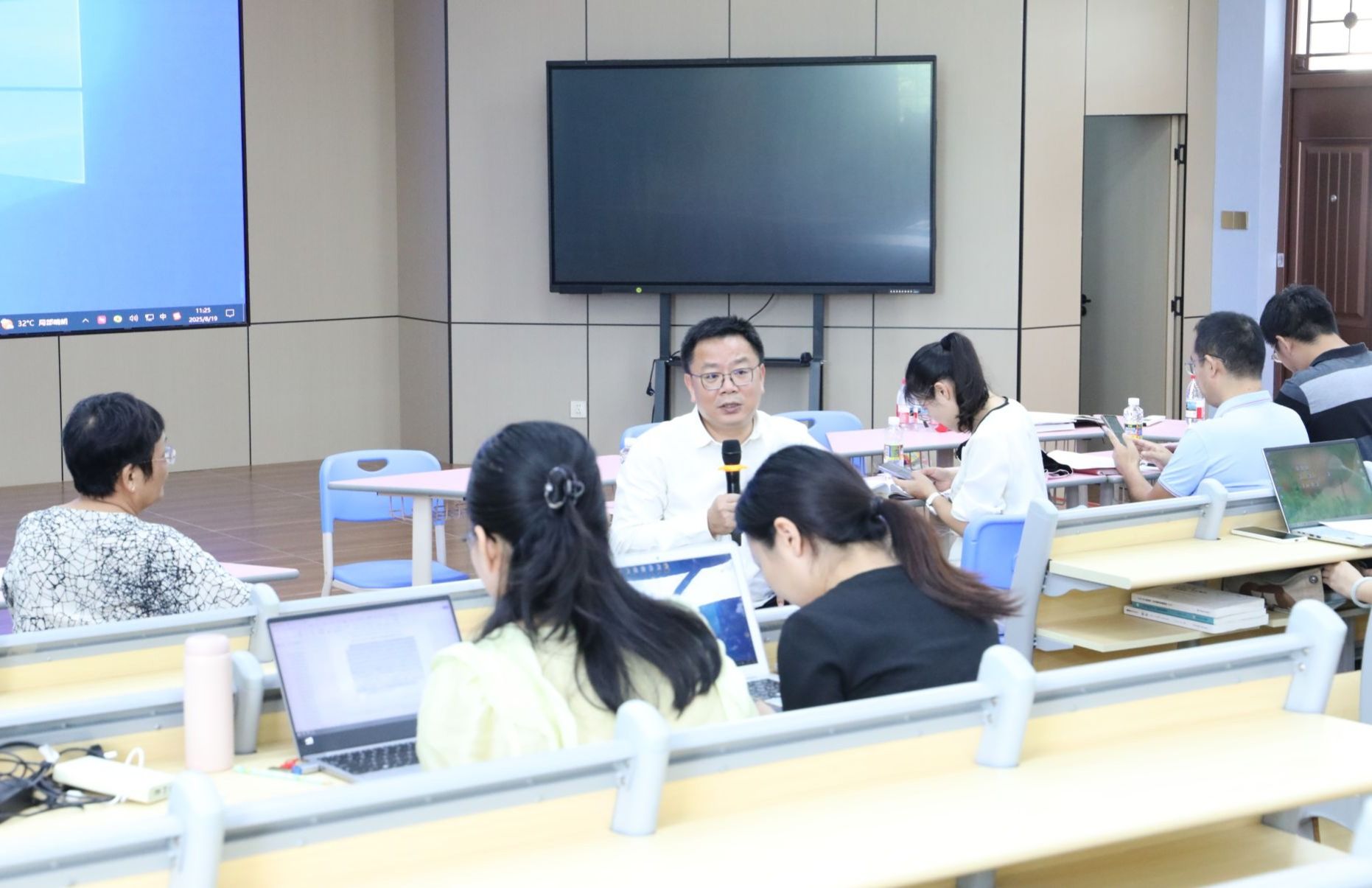 王华说,思政课教师在课堂上承担立德树人重任,希望参赛团队精心打磨教学内容,运用多样化教学方法,让思政课内容既有理论深度,又具现实温度。他鼓励大家调整好心态,将成绩归零,在比赛过程中积极与同行交流切磋,在思想碰撞中凝聚团队合力,实现个人能力的提升与团队整体水平的进步。同时强调参加比赛的意义在于反哺教学,要推广优质教学资源和先进教学方法,将比赛积累的经验运用到课堂教学,实现以赛促教、教学相长的良性循环,实现更好的育人效果。