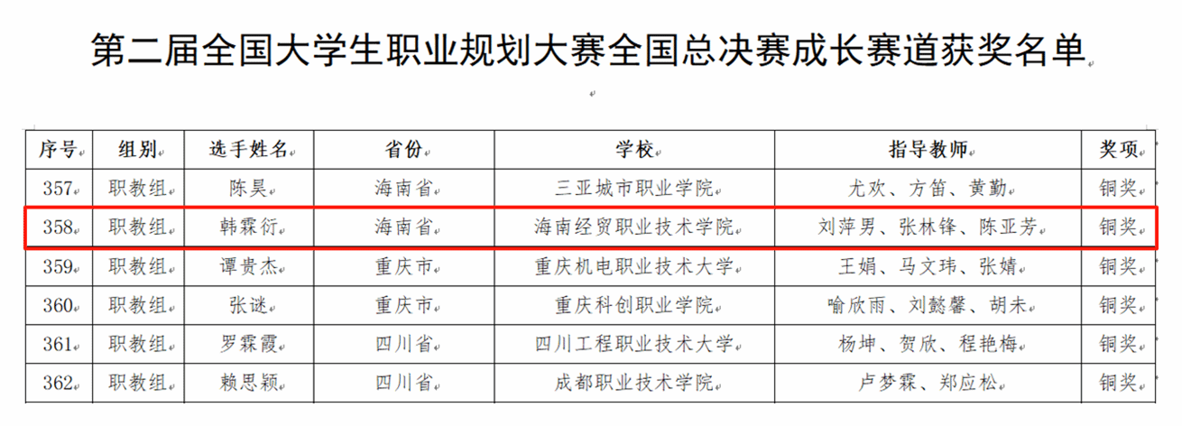 近日,教育部公布第二届全国大学生职业规划大赛总决赛获奖名单,beat365vip官网登录入口国际旅游学院2024级旅游管理专业学生韩霖衍凭借“一站式旅行策划管家”作品,荣获成长赛道职教组铜奖。