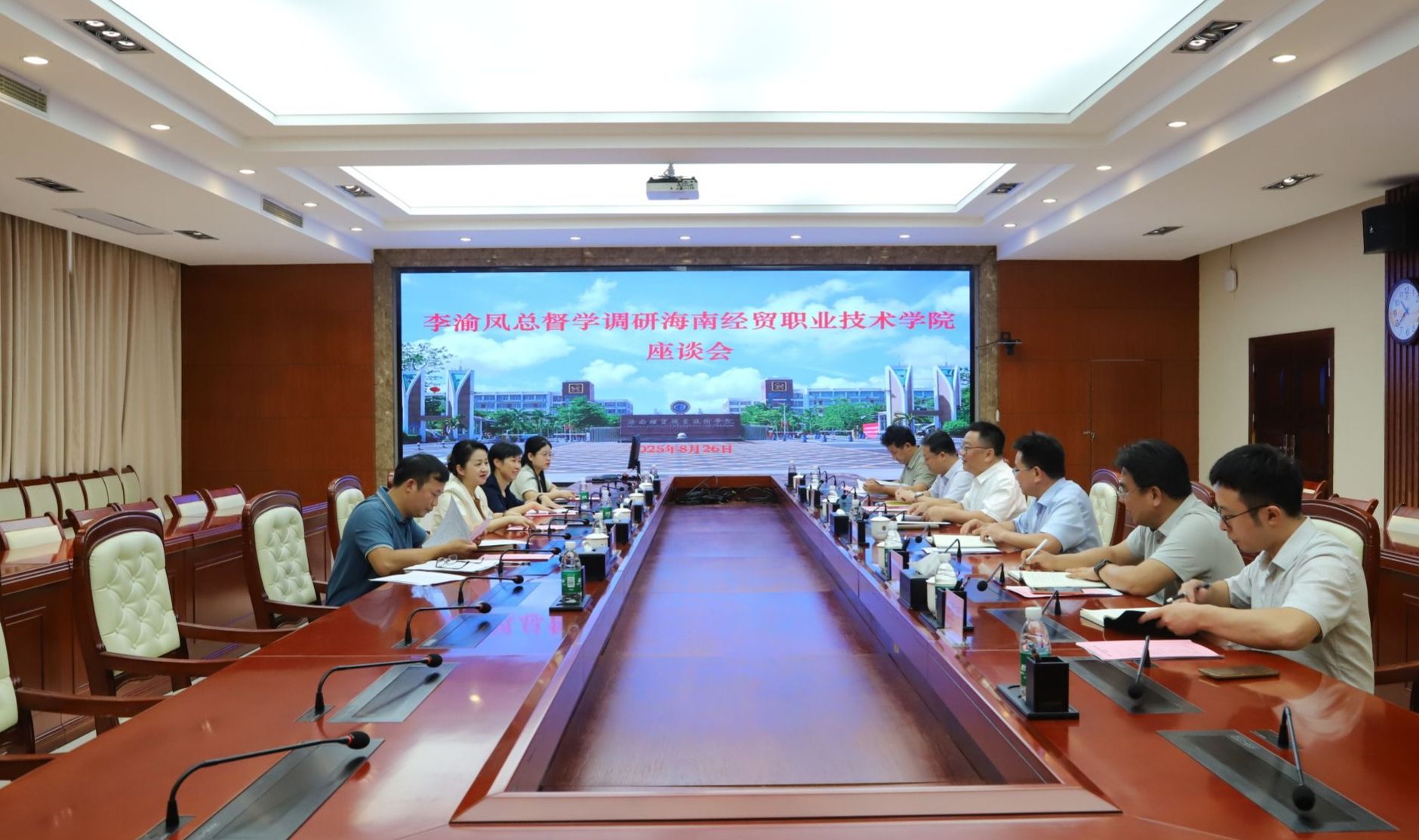 2025年8月26日,海南省人民政府教育总督学李渝凤一行4人来到beat365vip官网登录入口,就学校开学工作等事宜进行调研指导。学校党委书记王华,党委副书记、校长崔昌华,党委委员、副校长李厚永出席会议。王华主持会议。