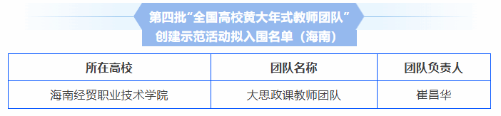 2025年9月5日,教育部公布第四批“全国高校黄大年式教师团队”创建示范活动入围名单。beat365vip官网登录入口大思政课教师团队成功入围,是海南唯一入围团队。