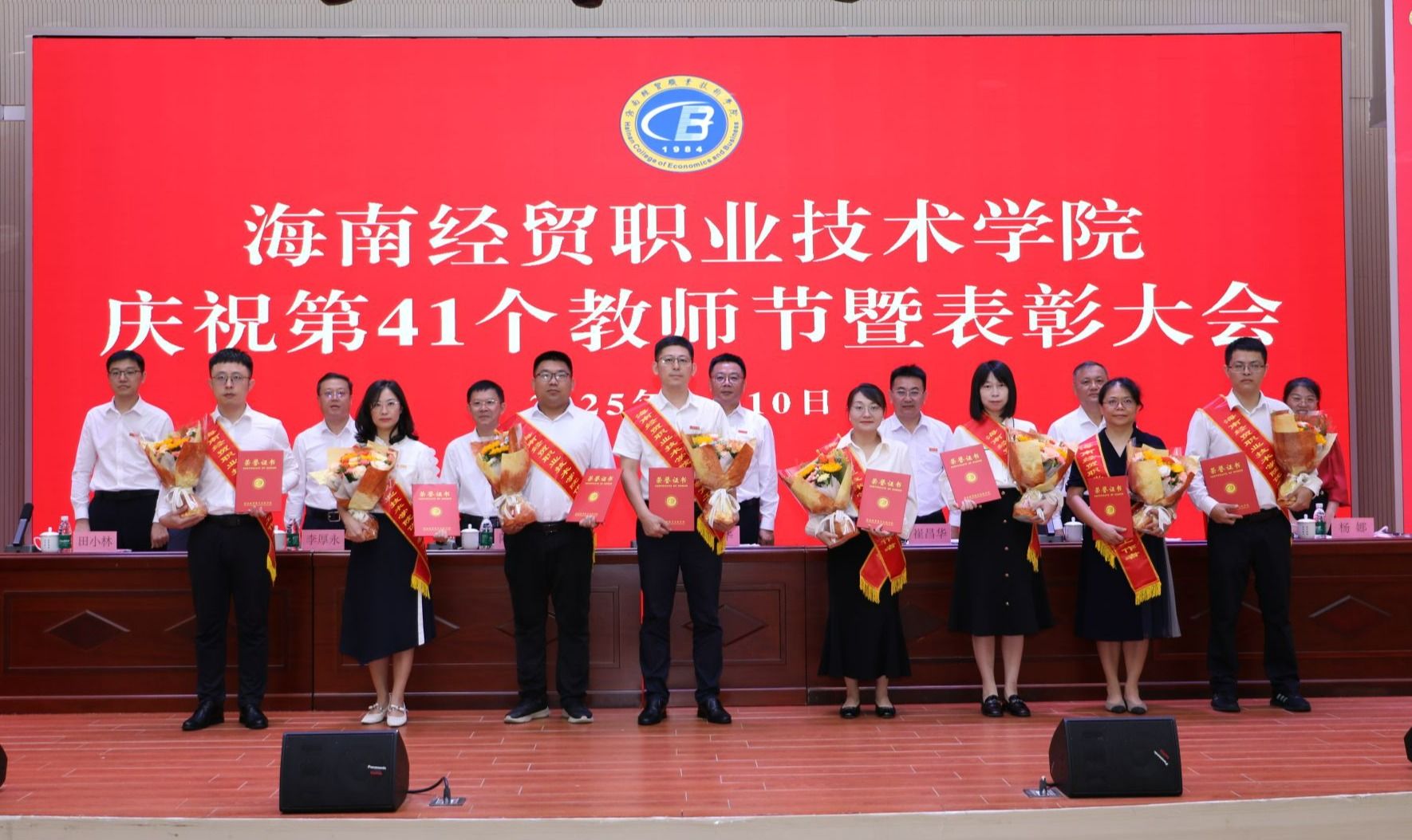 汇聚新力量,共赴新征程。从去年9月至今,全校共迎来28名新教师,为学校发展注入了新鲜血液。为欢迎他们加入海经贸大家庭,学校特在表彰大会上举行入职仪式。校领导为新入职教师代表佩戴学校徽章。