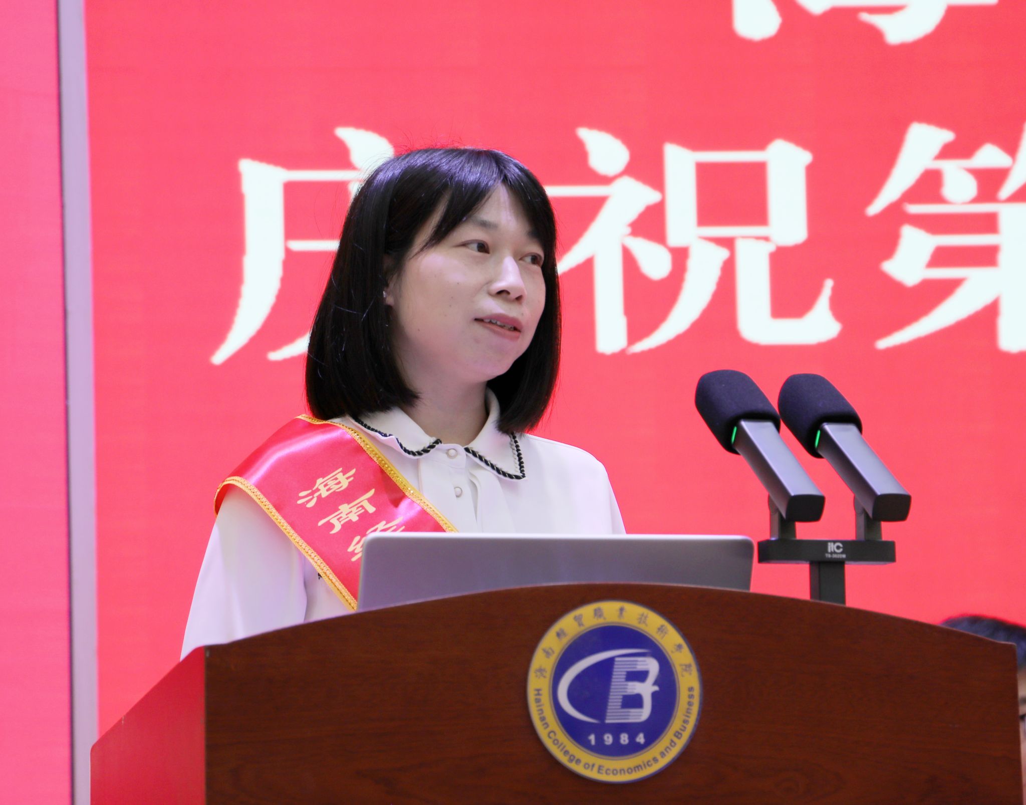 2025年海南省优秀教育工作者、马克思主义学院院长马桂琴,2025年学校优秀教师代表、机电与汽车工程学院教师唐军,2025年学校优秀教育工作者代表、外国语学院党总支副书记郑艳,学校第十批从教三十年教师代表、财务管理学院教师马志坚,新入职教师代表、人文艺术学院教师张晓凤分别交流发言。大家结合自身岗位实践与从教历程,分享了在教书育人、学术科研等领域的收获和成果,畅谈身为人民教师的深度思考与真挚心声,传递出深刻温暖的责任认知与情感共鸣。
