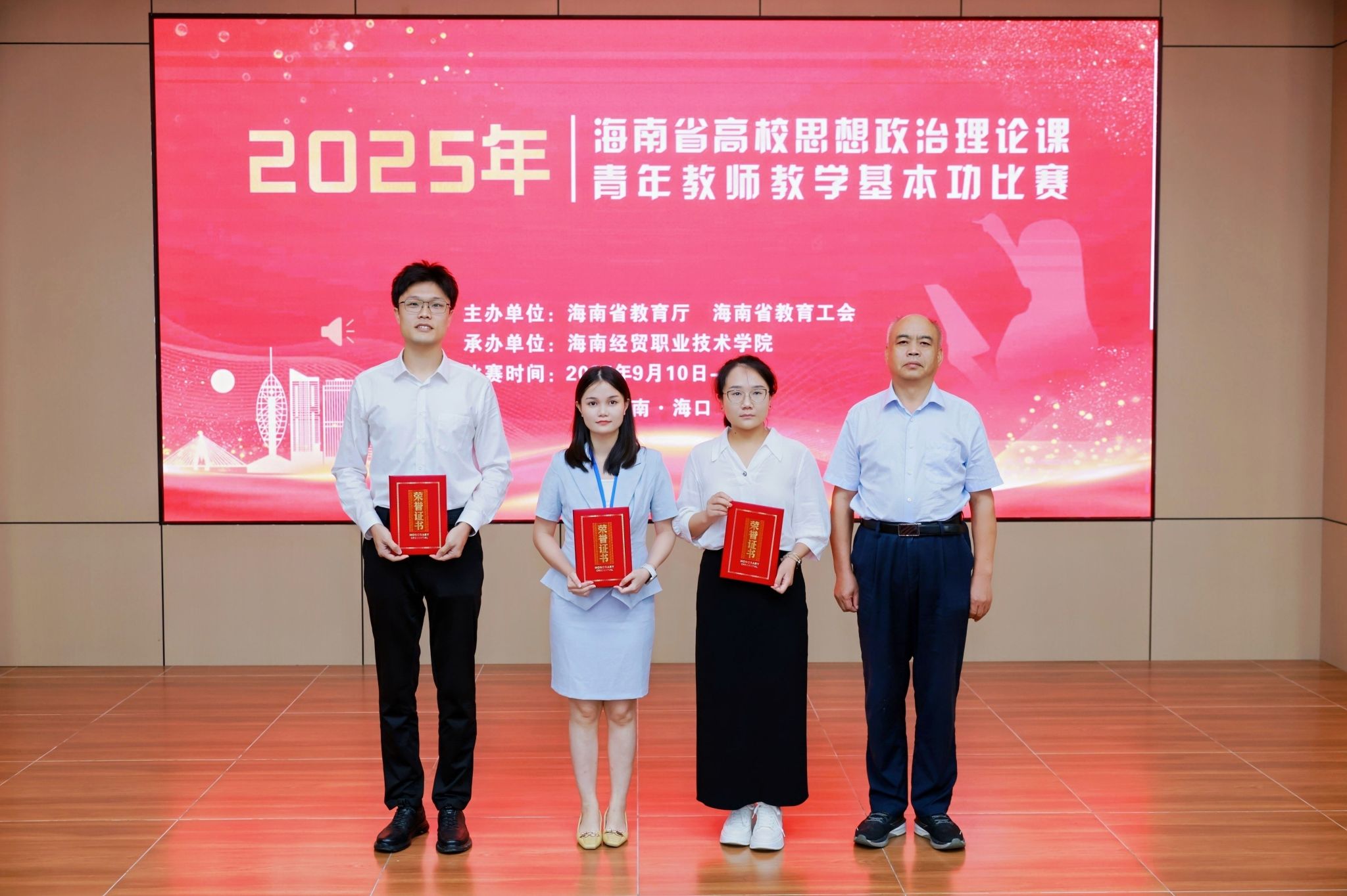 9月13日,由海南省教育厅、海南省教育工会主办的2025年海南省高校思想政治理论课青年教师教学基本功比赛在beat365vip官网登录入口闭幕。学校思政课教师李鼎、刘卓、张乐分别荣获高职组一、二、三等奖。