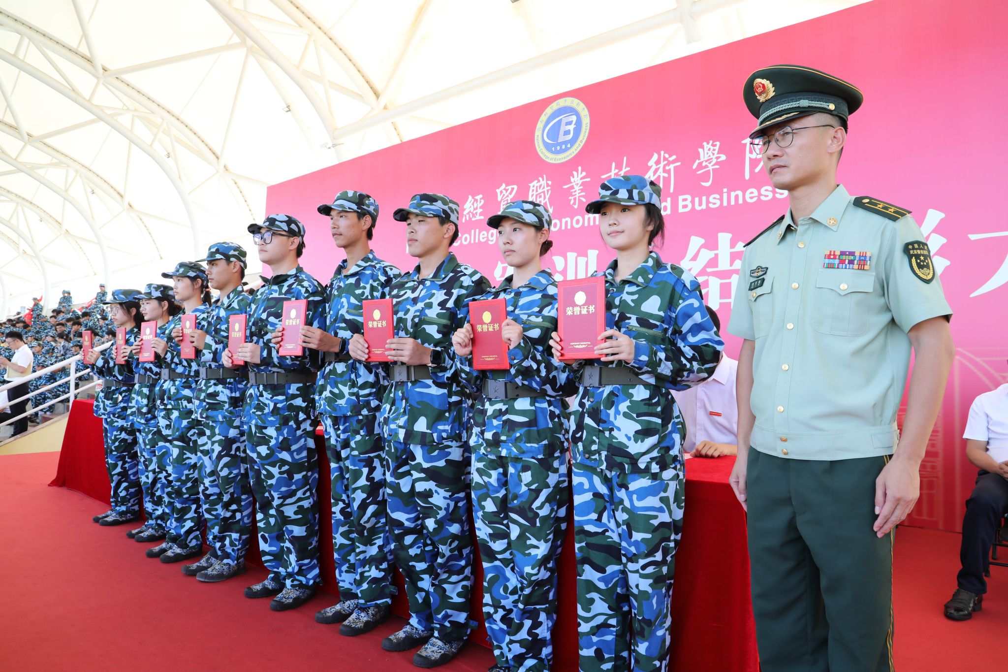 大会对军训中涌现出的3个“优秀组织”、12个“先进连队”、49间“文明宿舍”、150名“军训标兵”进行了表彰,并向承训部队授予“劲旅雄风扬四海,精武强能铸栋梁;武警本色育学子,同心逐梦启新程”锦旗。