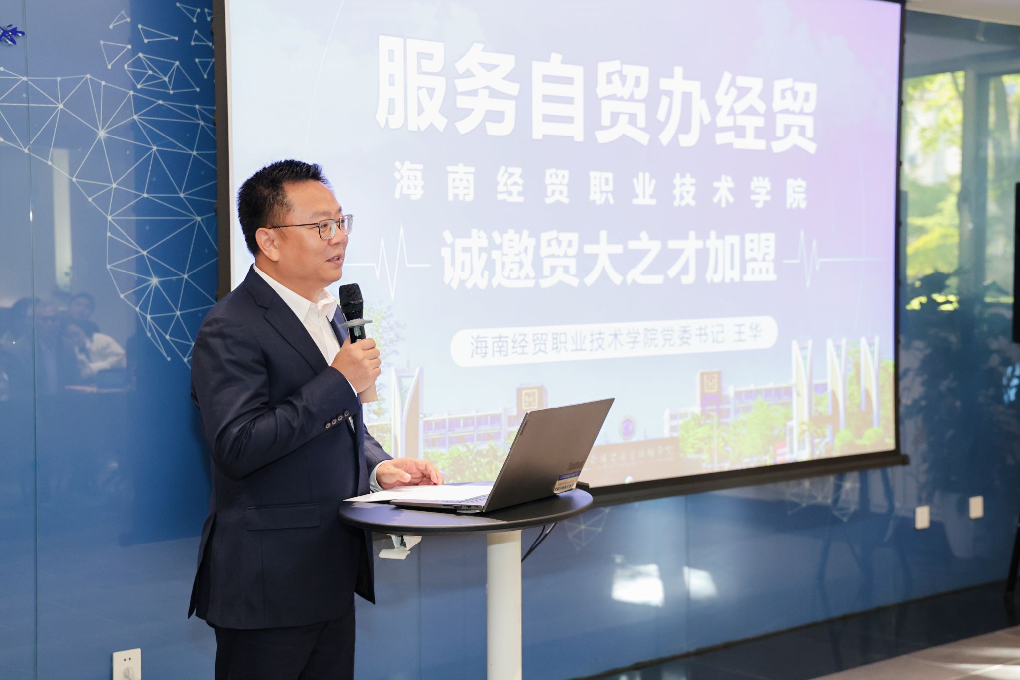 作为我省重点用人单位代表,海经贸在对外经济贸易大学举办了专场宣讲会。王华围绕学校发展成效、自贸港机遇、人才待遇及校际合作渊源展开全面介绍。他诚挚地向对外经济贸易大学优秀毕业生发出邀请:“海南自贸港正迎来前所未有的发展机遇,海经贸为大家提供了施展才华的广阔舞台。欢迎大家搭乘自贸港发展快车,共享海南新机遇,共同开创事业发展新局面!”