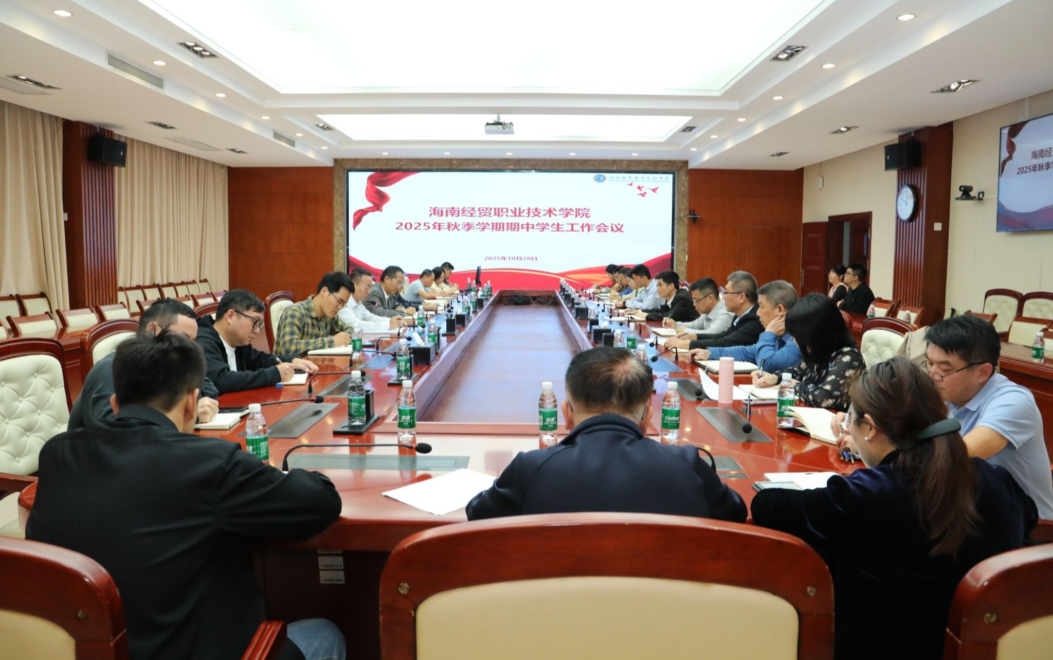 会上,学生工作部(处)和团委作工作汇报和近期工作部署。各二级学院汇报近期学生工作开展情况,围绕学生日常管理、安全稳定、心理健康和辅导员队伍管理等有关问题进行交流讨论。