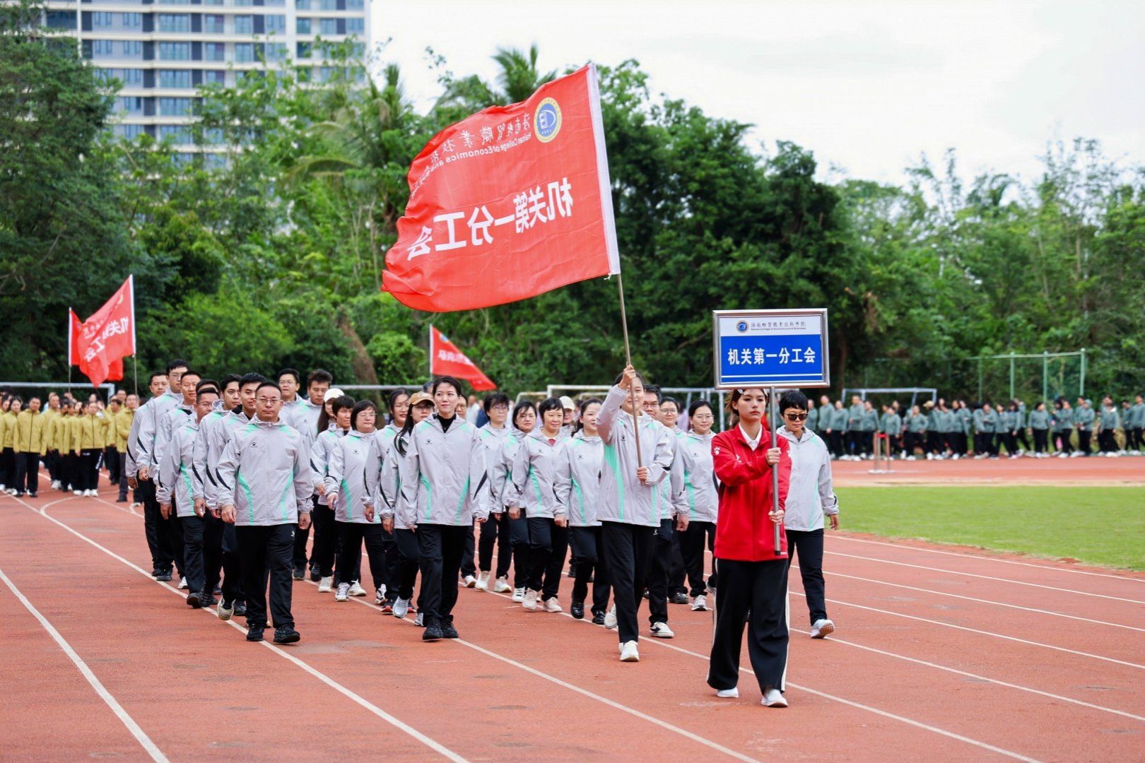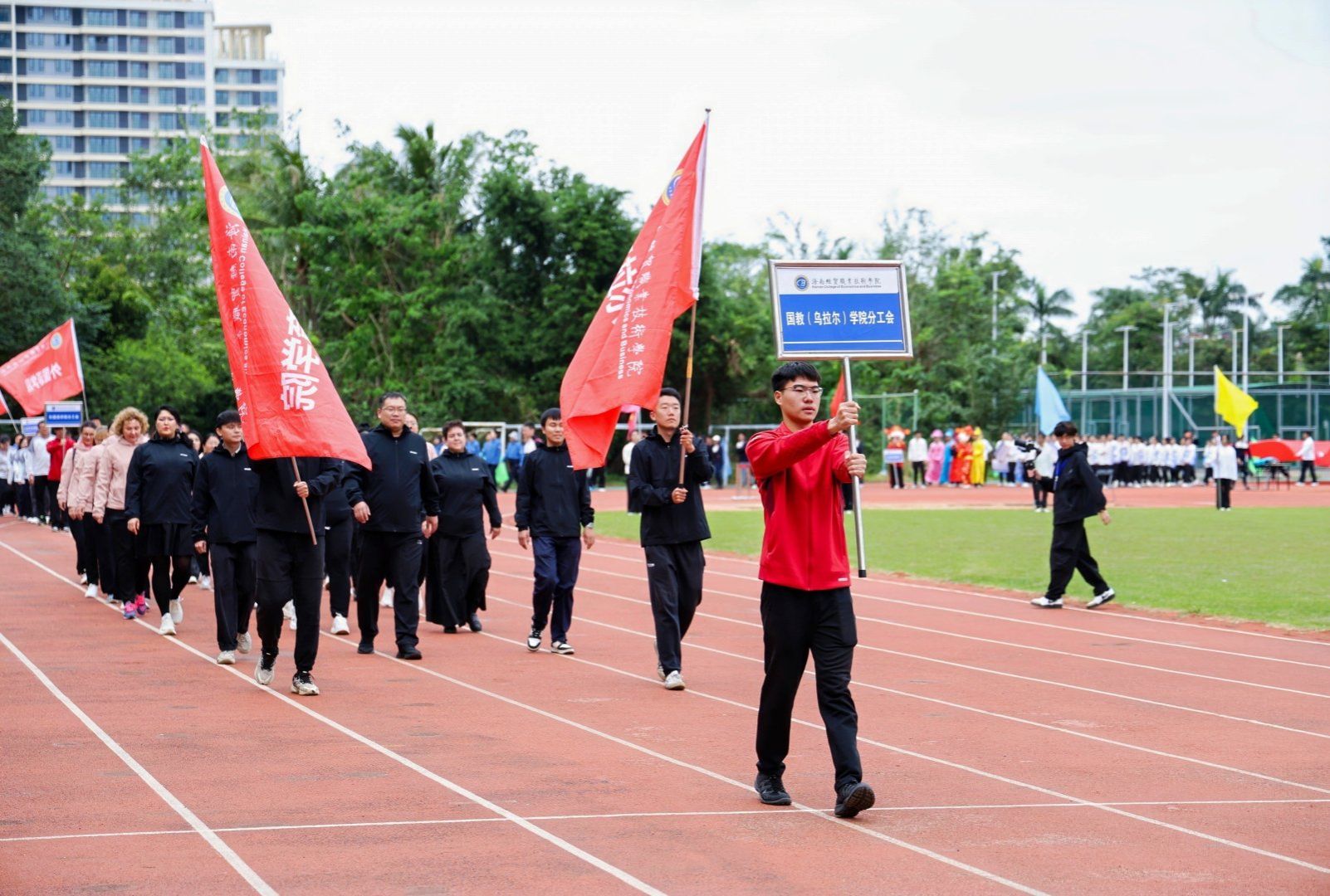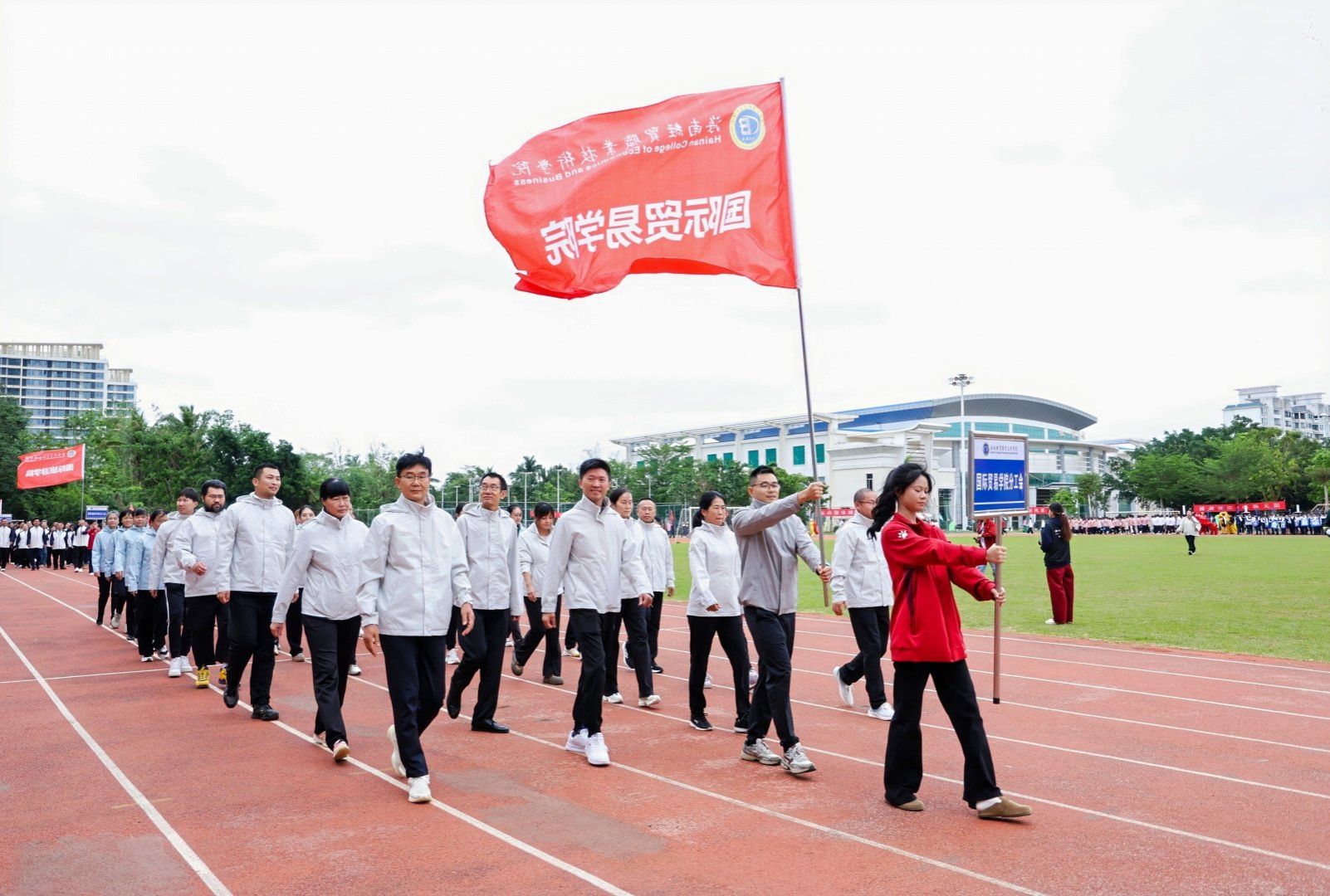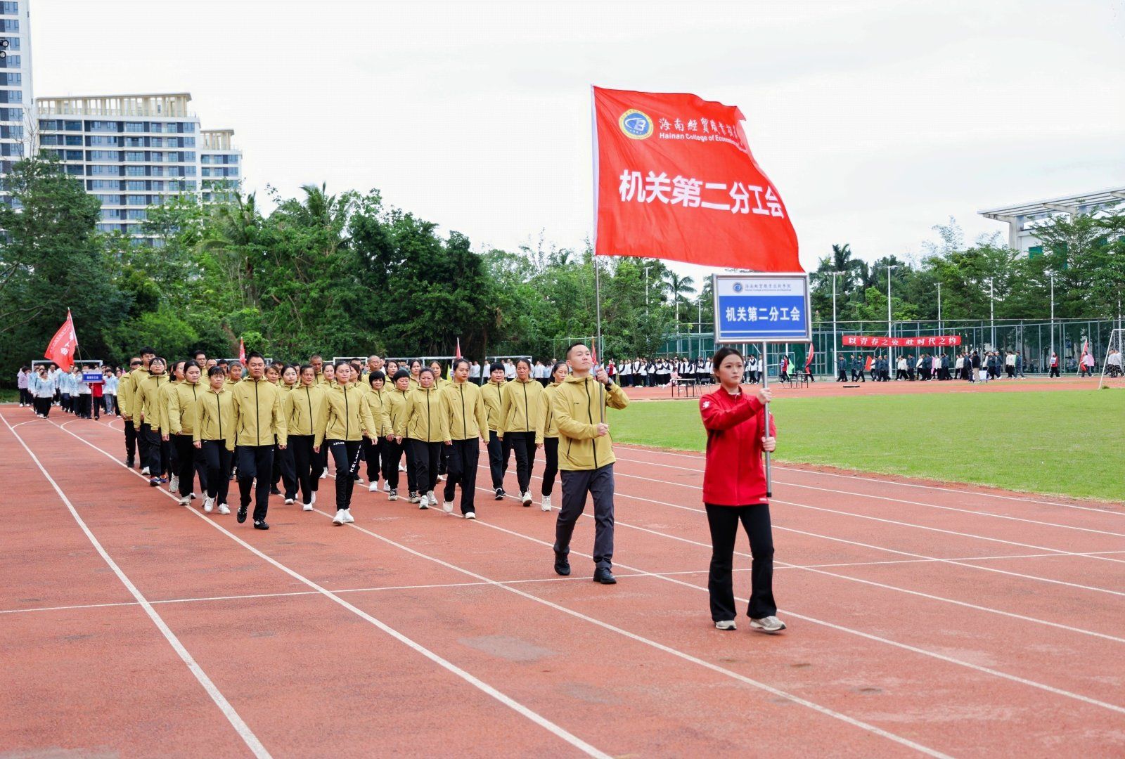 《运动员进行曲》奏响激昂节拍,国旗护卫队、校旗护卫队、彩旗方队、裁判员方队、教职工方队及各二级学院学生运动员方队身着统一服装,意气风发,迈入赛场。整齐的步伐踏响奋进节奏,嘹亮的口号传递青春力量,昂扬的斗志尽显青春担当,展现出海经贸师生奋发向上的昂扬姿态。