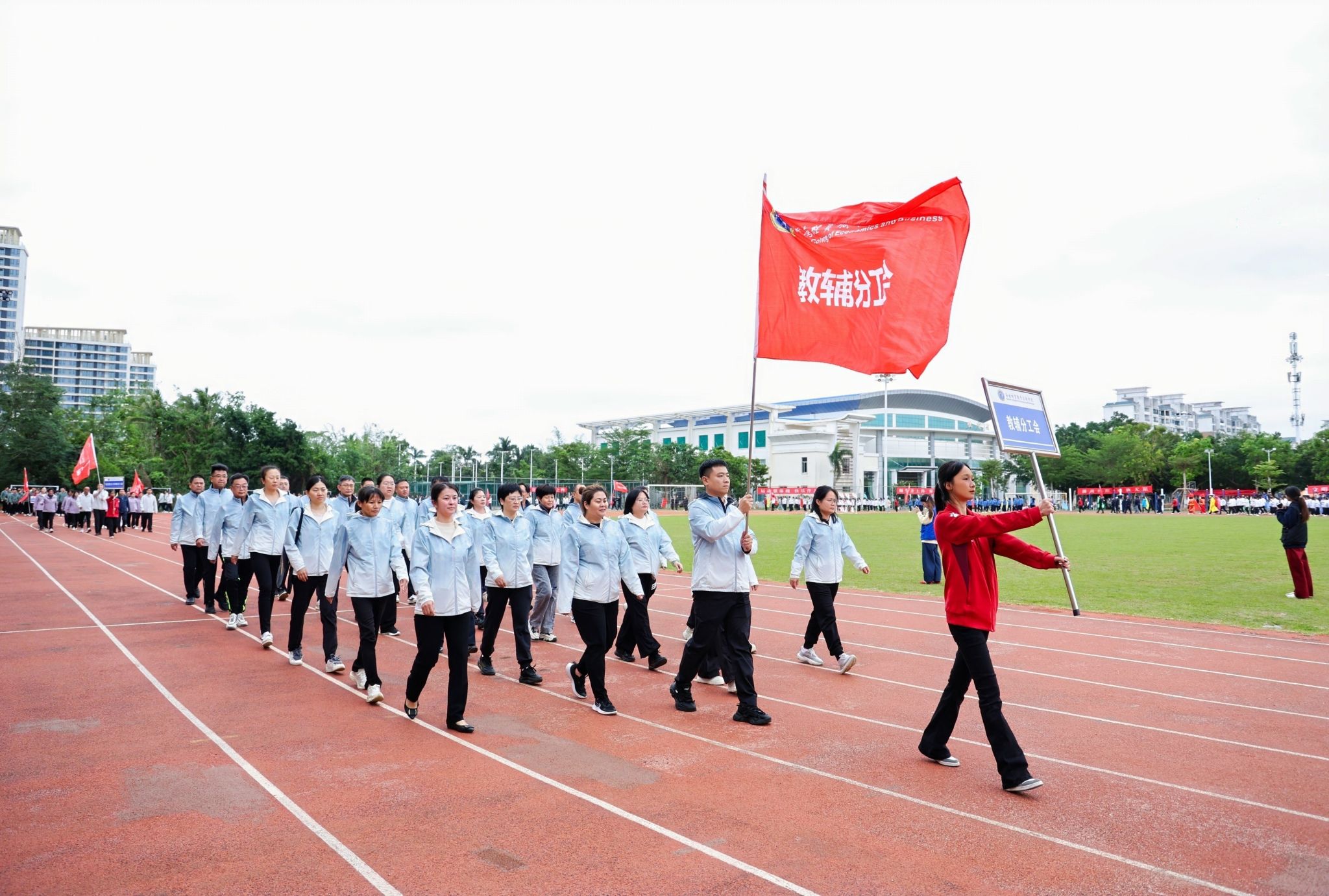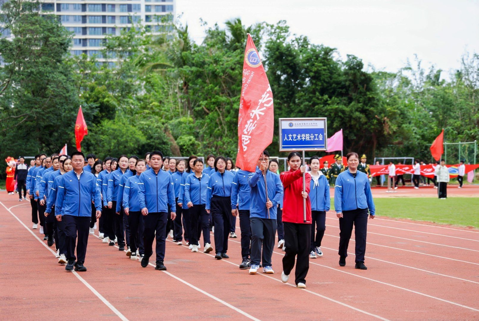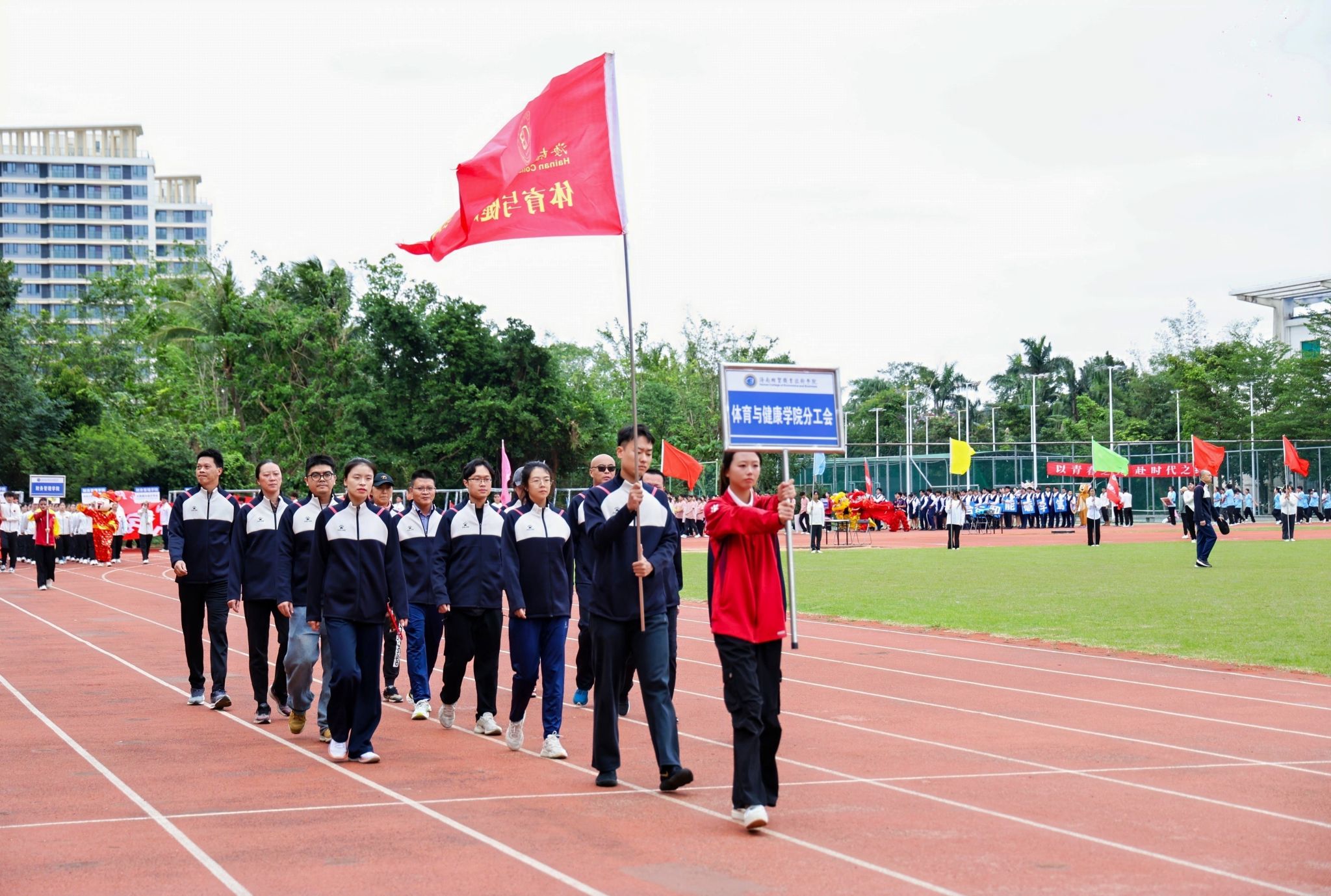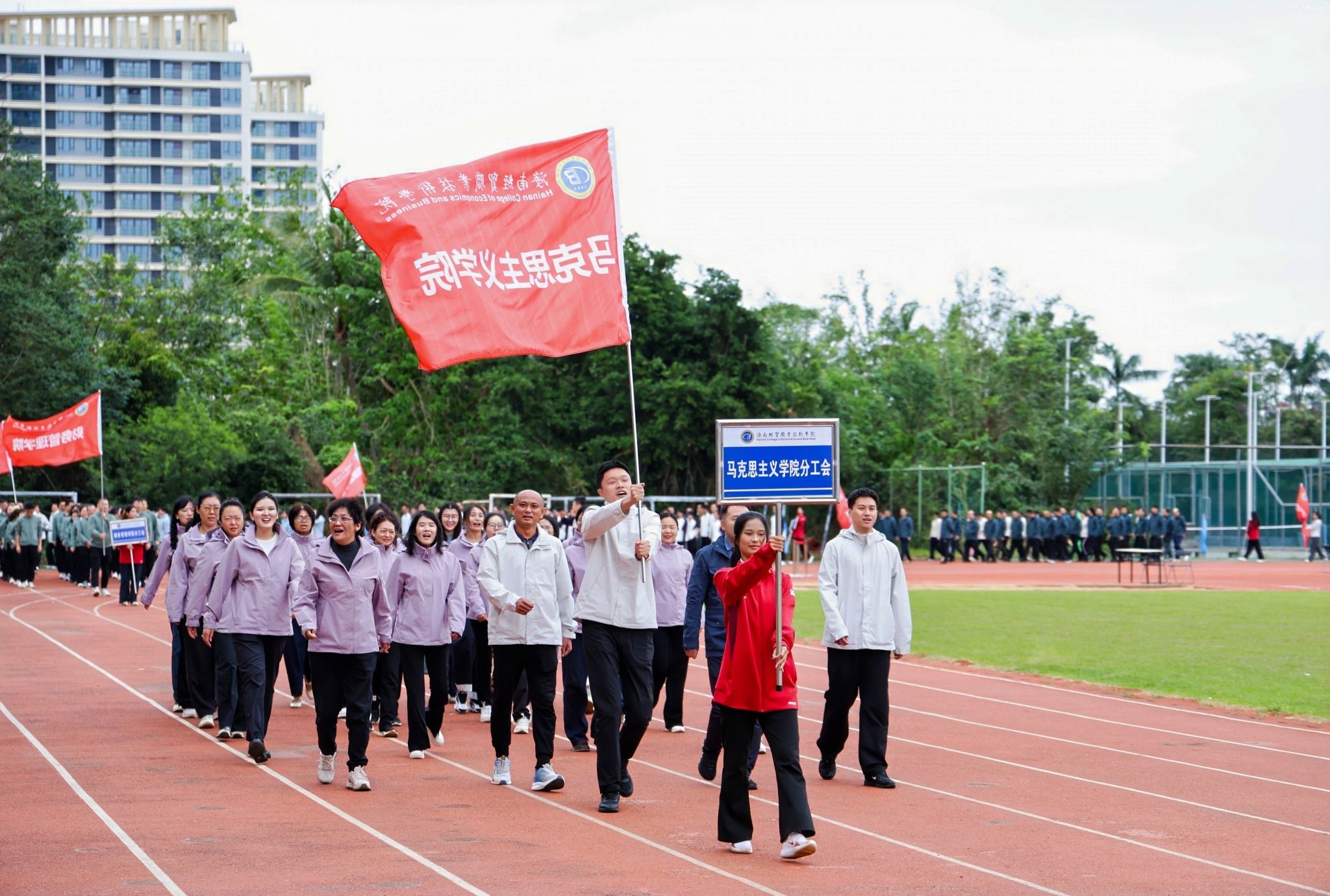 《运动员进行曲》奏响激昂节拍,国旗护卫队、校旗护卫队、彩旗方队、裁判员方队、教职工方队及各二级学院学生运动员方队身着统一服装,意气风发,迈入赛场。整齐的步伐踏响奋进节奏,嘹亮的口号传递青春力量,昂扬的斗志尽显青春担当,展现出海经贸师生奋发向上的昂扬姿态。
