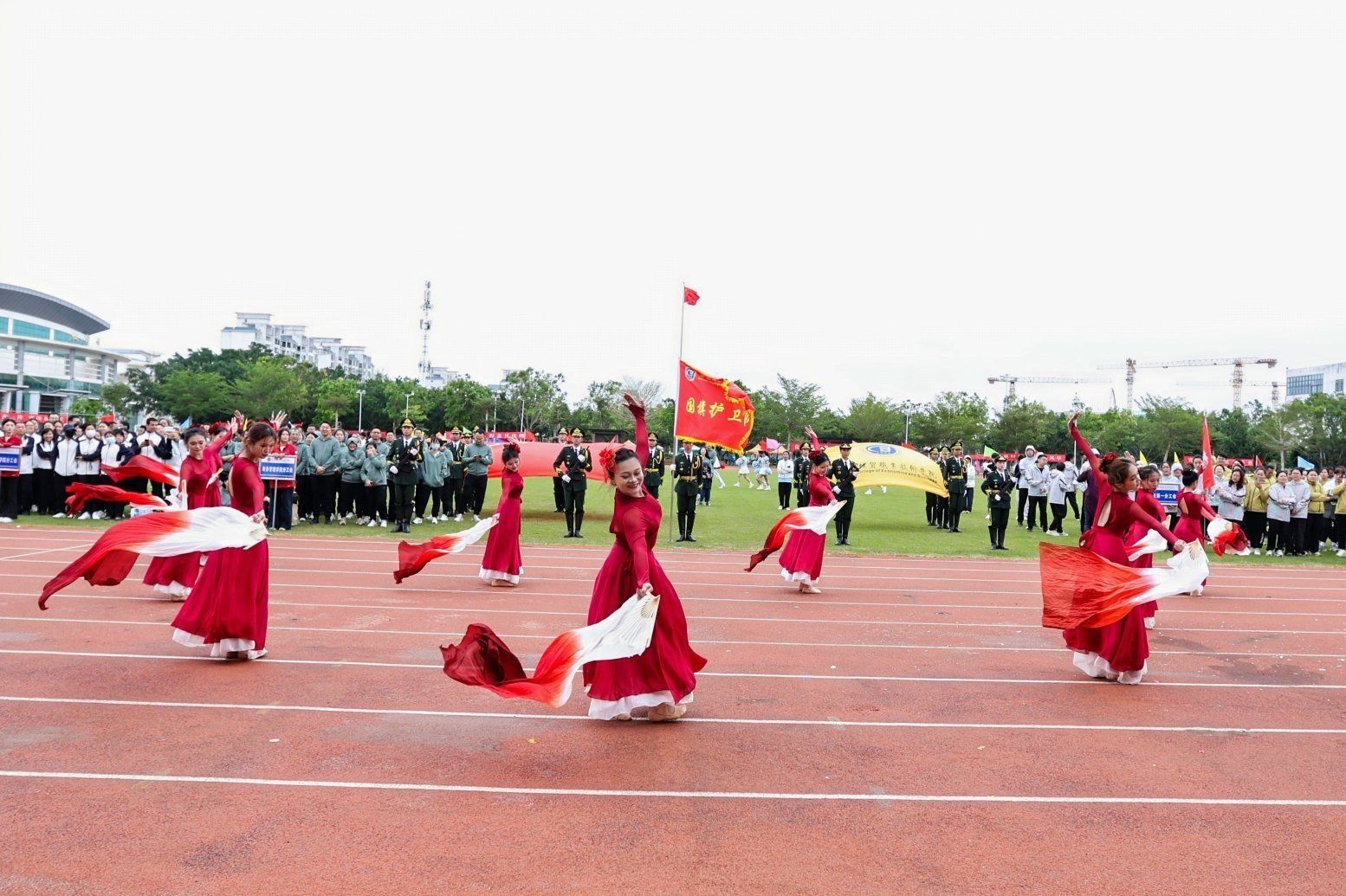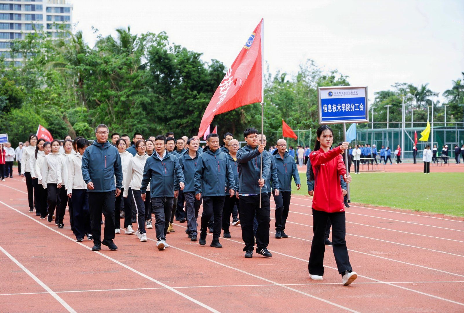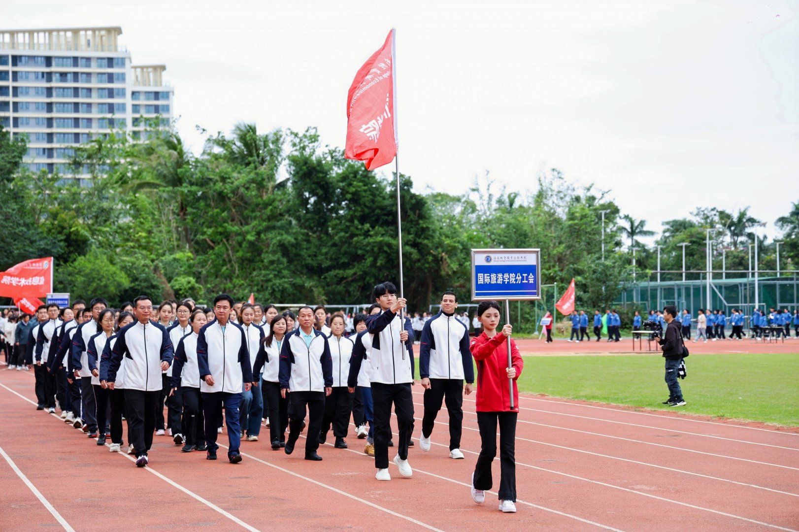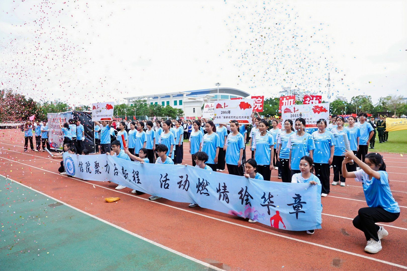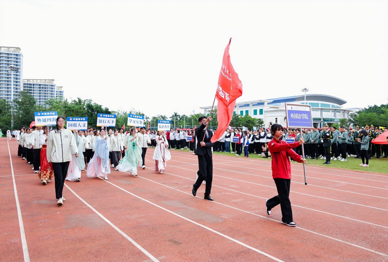 《运动员进行曲》奏响激昂节拍,国旗护卫队、校旗护卫队、彩旗方队、裁判员方队、教职工方队及各二级学院学生运动员方队身着统一服装,意气风发,迈入赛场。整齐的步伐踏响奋进节奏,嘹亮的口号传递青春力量,昂扬的斗志尽显青春担当,展现出海经贸师生奋发向上的昂扬姿态。
