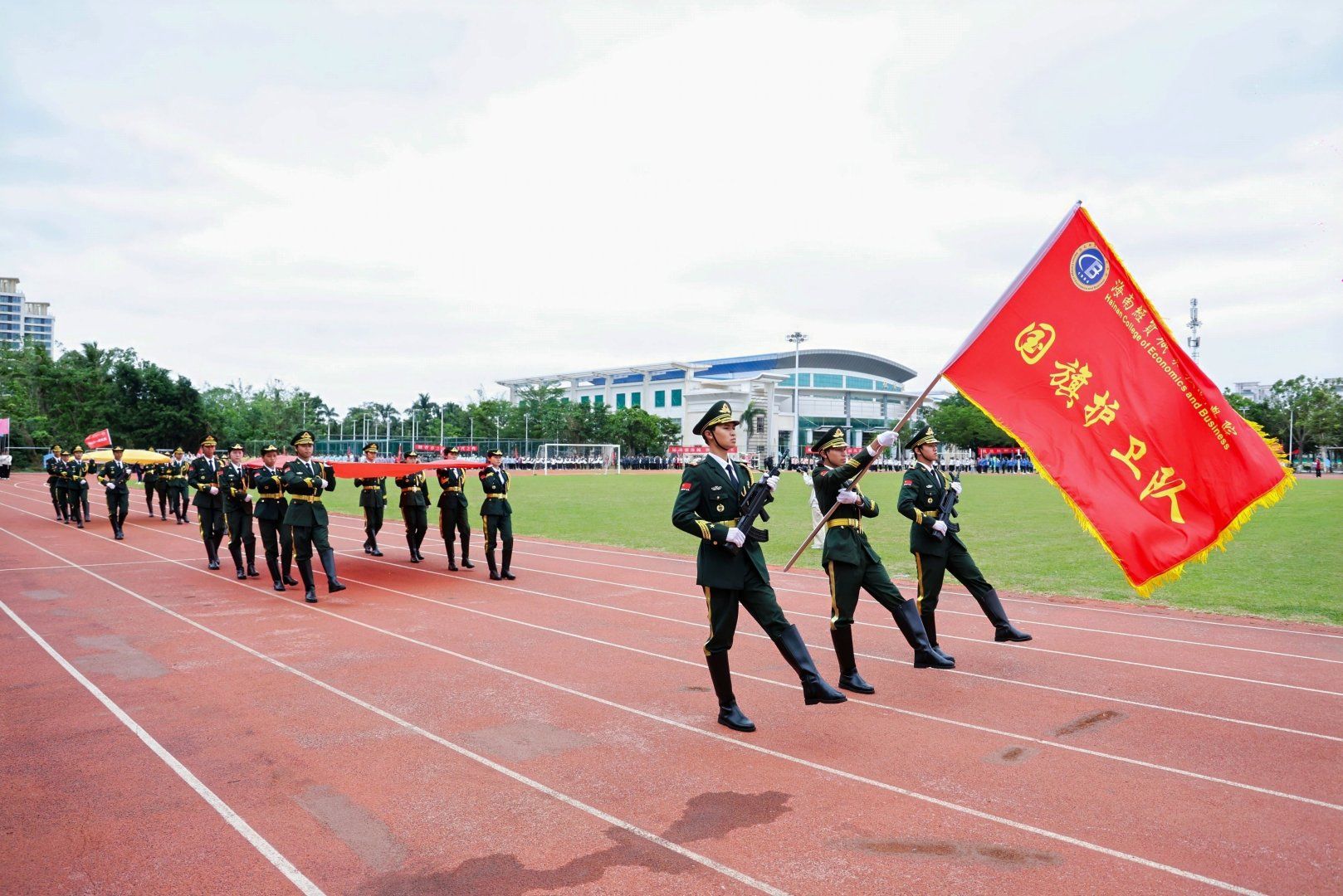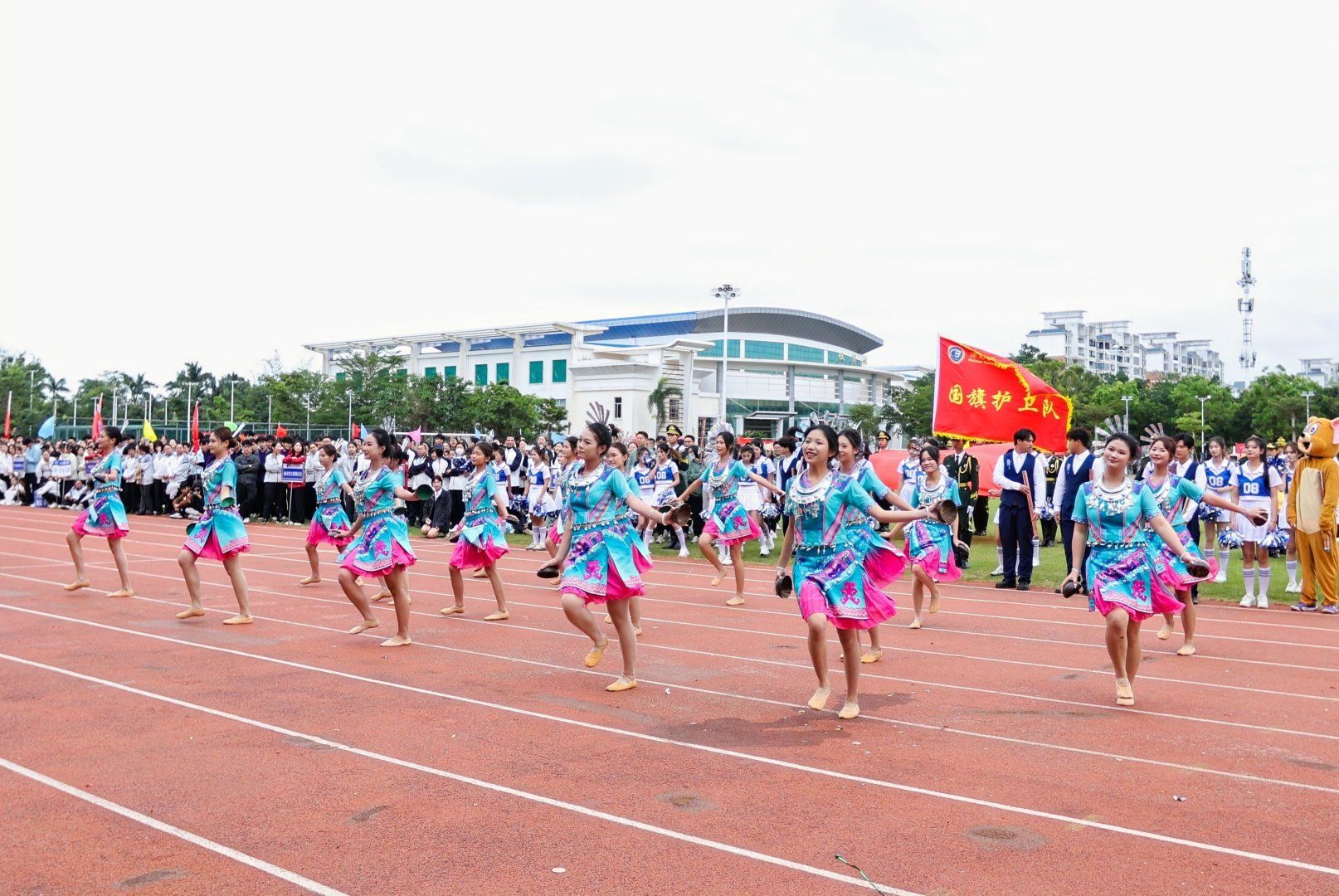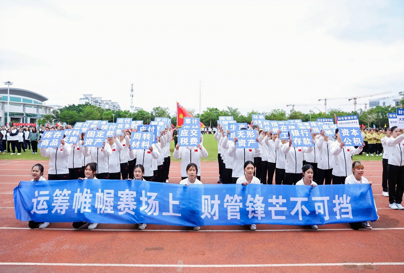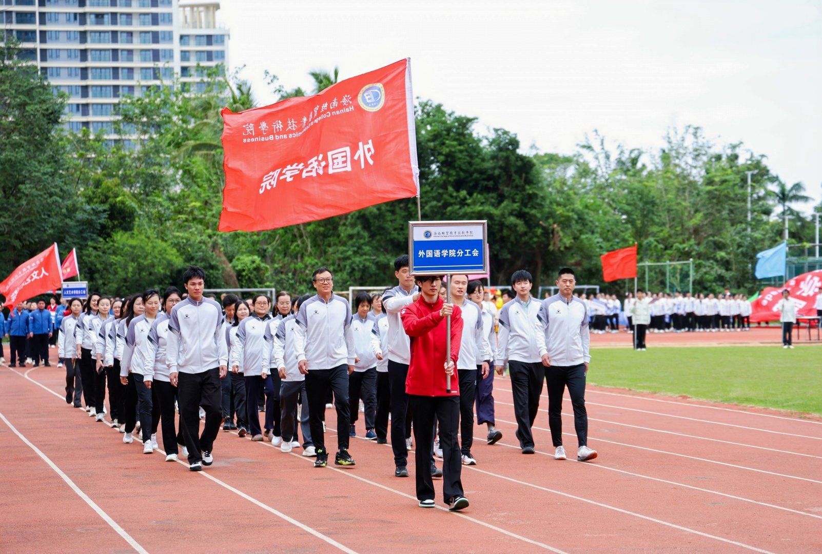 《运动员进行曲》奏响激昂节拍,国旗护卫队、校旗护卫队、彩旗方队、裁判员方队、教职工方队及各二级学院学生运动员方队身着统一服装,意气风发,迈入赛场。整齐的步伐踏响奋进节奏,嘹亮的口号传递青春力量,昂扬的斗志尽显青春担当,展现出海经贸师生奋发向上的昂扬姿态。