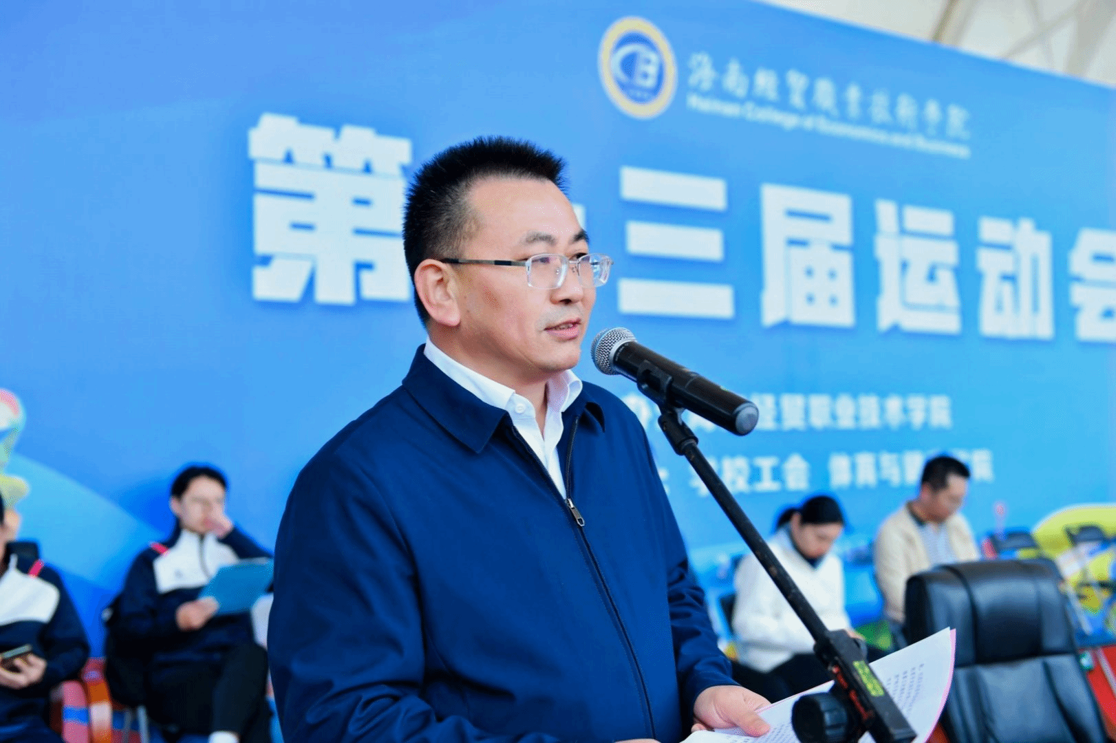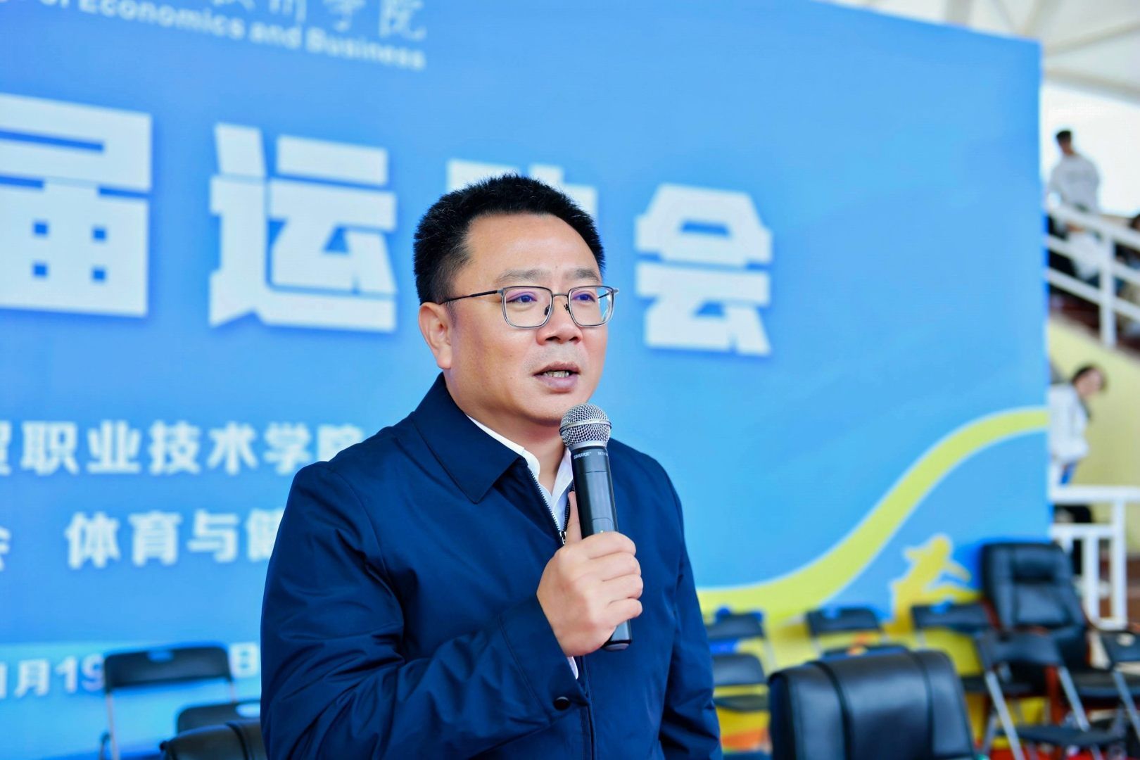 崔昌华代表学校向运动会开幕表示热烈祝贺,向所有运动员、裁判员和辛勤筹备的工作人员表示诚挚感谢。他说,当前第十五届全国运动会正火热进行,置身这股全民体育的浓厚氛围中,更能深切体悟体育的独特魅力。希望大家将个人拼搏与时代发展脉搏和集体荣誉紧密相融,在竞技中收获成长与担当。他寄语全体师生:像林诗栋那样,敢于“孤勇奋进”,做自己人生的冠军;像冠军团队那样,善于“协调作战”,凝聚磅礴的集体力量;像奋力冲刺学校发展目标那样,勇于“挑战极限”,共建共享幸福经贸。祝愿大家尽情享受运动的快乐,共同呈现一场精彩的体育盛会。