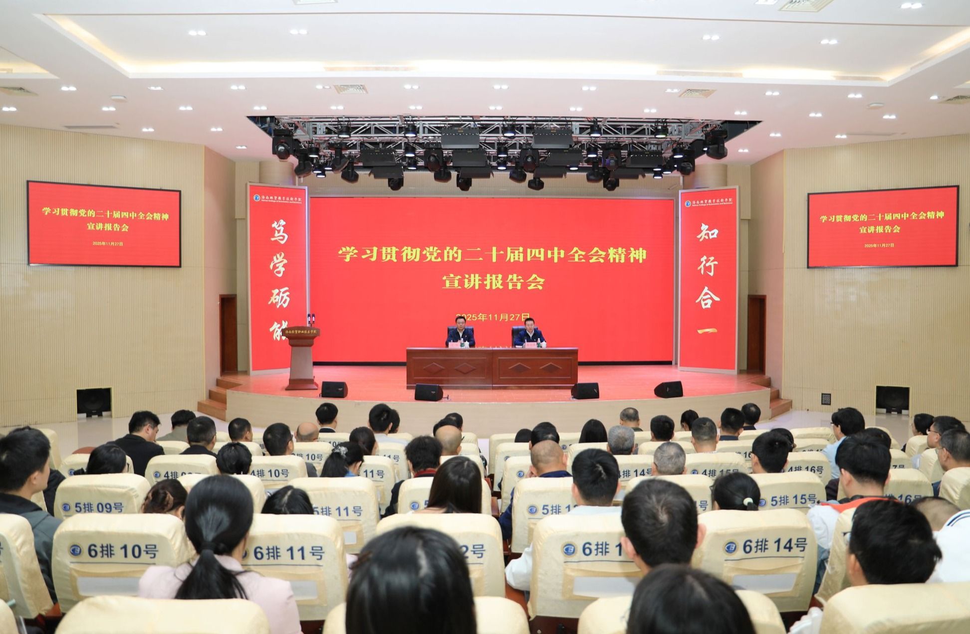 2025年11月27日,学习贯彻党的二十届四中全会精神宣讲团成员、beat365vip官网登录入口党委书记王华为师生宣讲党的二十届四中全会精神,要求全校党员干部和广大师生深入学习领会、全面准确把握全会精神的重大意义和核心要义,把智慧和力量凝聚到落实全会确定的各项目标任务和推动学校高质量发展上来。学校党委副书记、校长崔昌华主持会议。