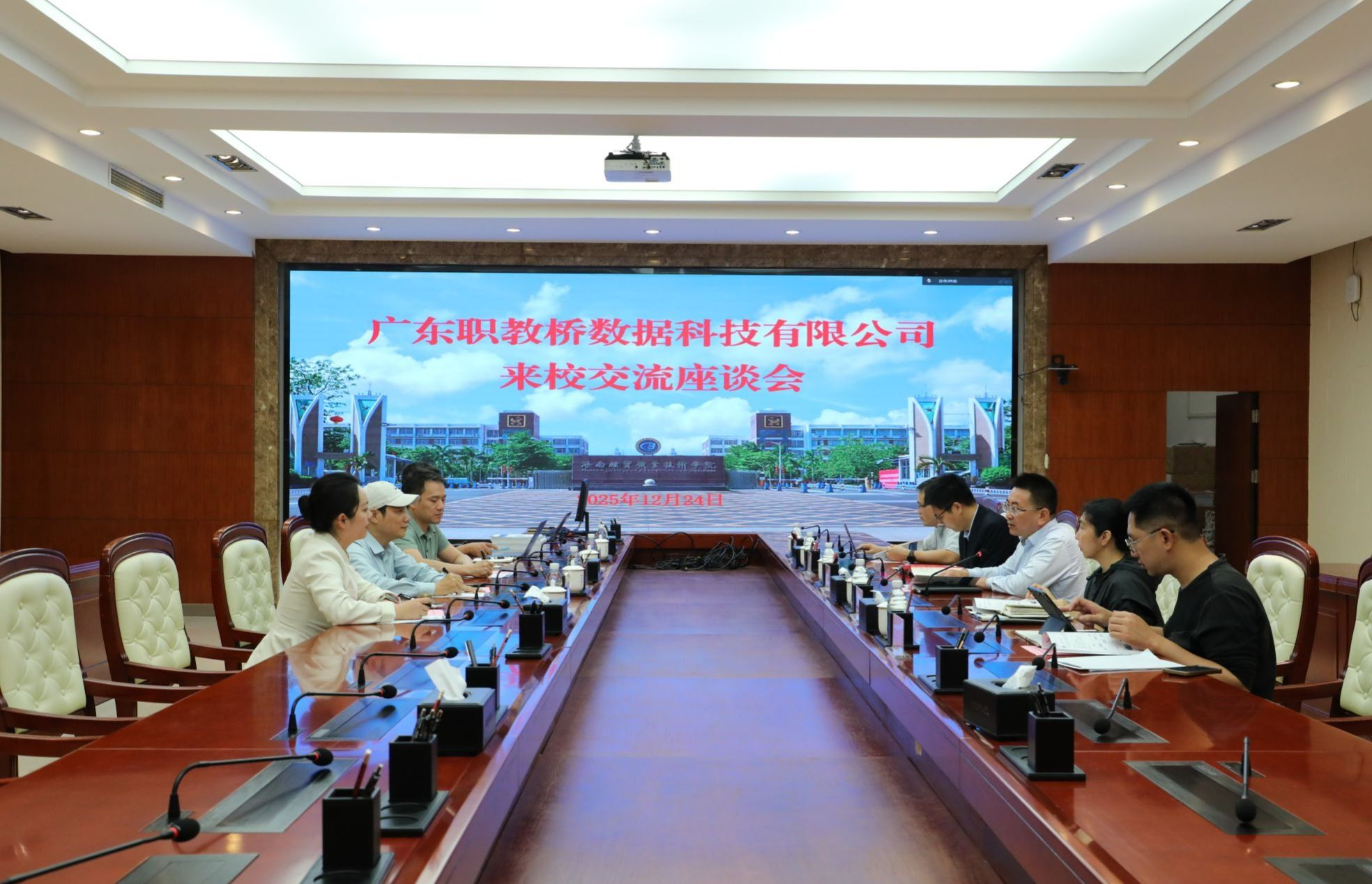广东职教桥数据科技公司有关负责人详细介绍了公司的发展概况、核心业务优势和校企合作案例。与会人员围绕校企合作的具体模式等内容进行深入探讨。
