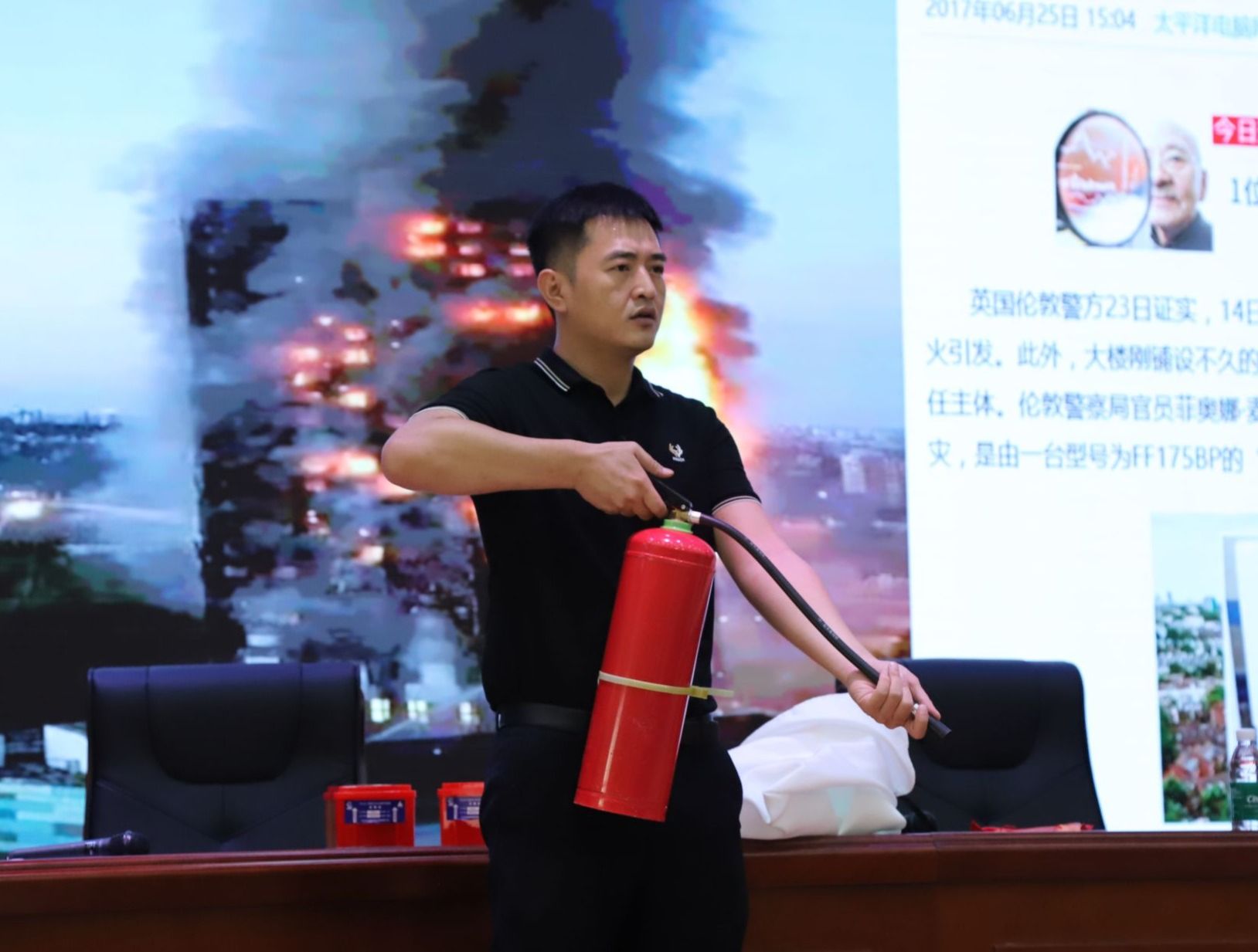 应急宣传教员符俊生讲解了灭火毯、干粉灭火器、防毒面具的使用及操作方法,用多媒体视频和图文的形式向大家介绍了常见的家庭起火、交通工具起火、宿舍起火的原因及造成的危害,并结合海南省近期发生的火灾案例,对师生进行警示教育。在学生宿舍楼,师生们实地开展了灭火和逃生疏散演练。