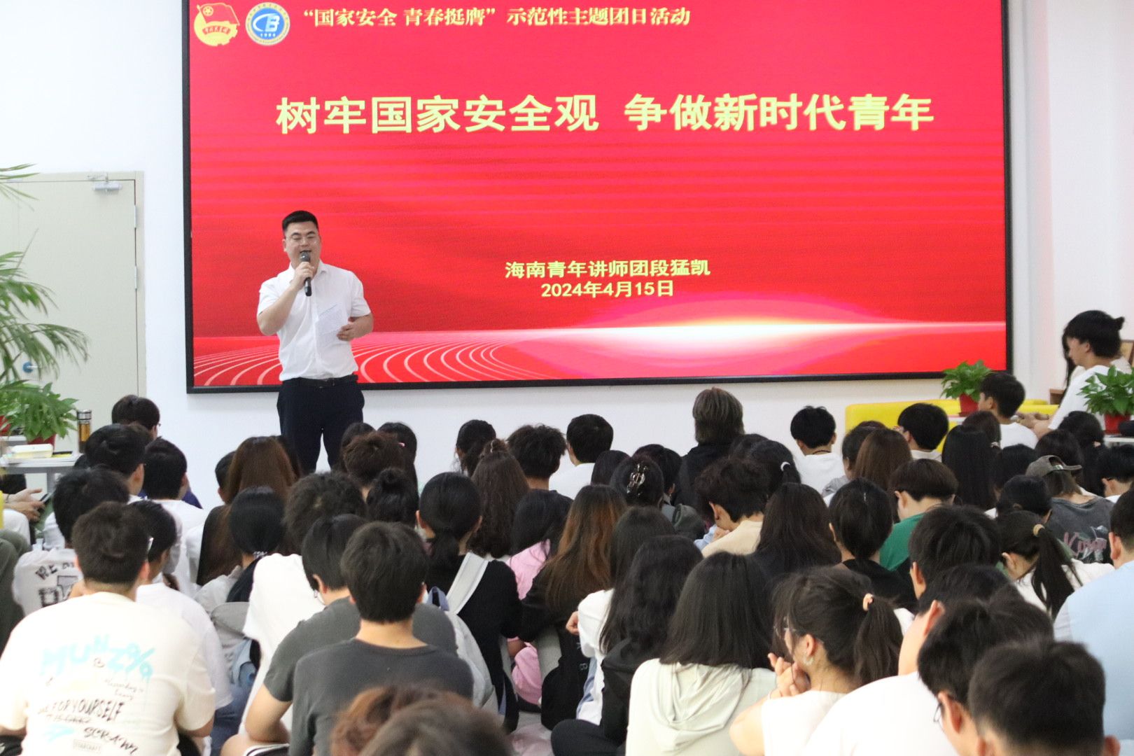 海南青年讲师团成员段猛凯讲授“树牢国家安全观,争做新时代青年”主题微团课。在场团员青年观看了《总体国家安全观》宣传教育视频,重温入团誓词,参观总体国家安全观主题展览,并围绕“国家安全 青春挺膺”主题积极讨论、踊跃发言。