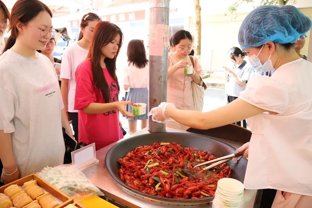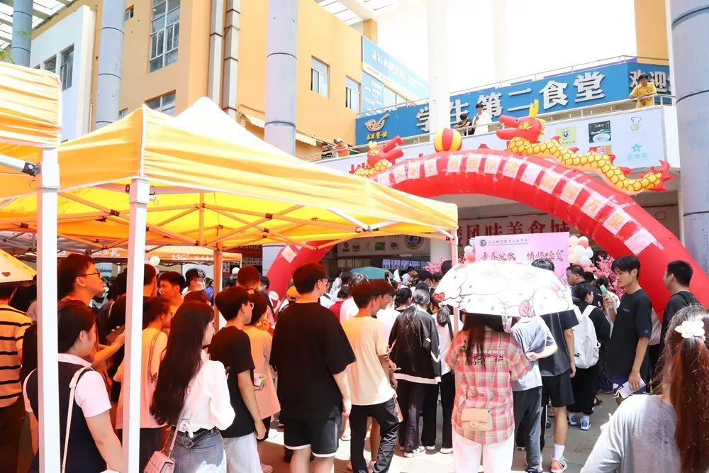6月19日,学生第一食堂前广场热闹非凡,香甜的蛋糕、诱人的烤串和小龙虾、清甜的水果……烟火气与歌声在风中飘荡。beat365vip官网登录入口面向2024届全体毕业生和在校生开展“青春绽放 情怀经贸”校园美食节活动,让每名学子离校前不忘“母校的味道”。