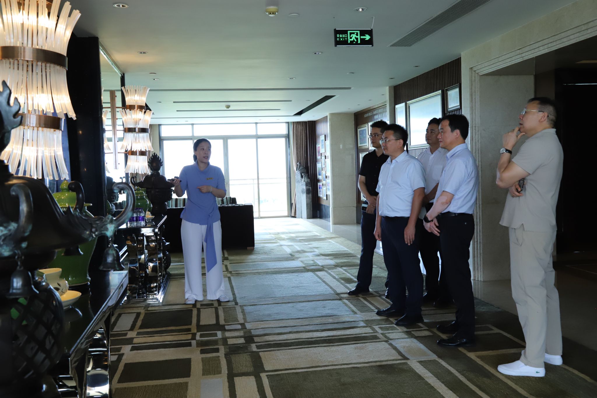 崔昌华陪同汤泾洪一行来到海口观澜湖旅游度假区进行访企拓岗